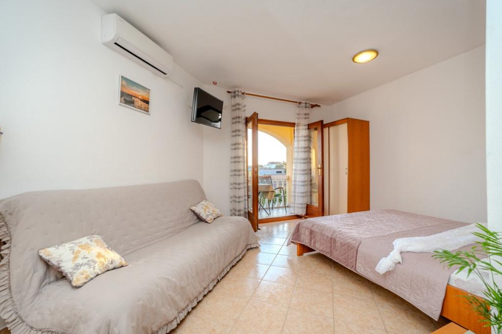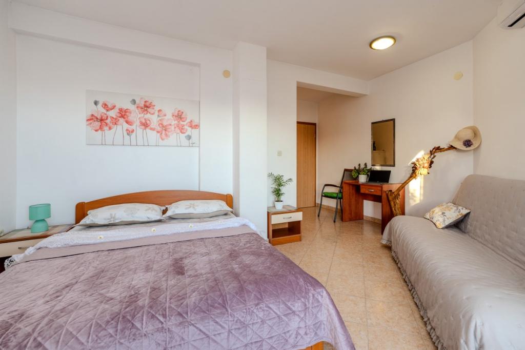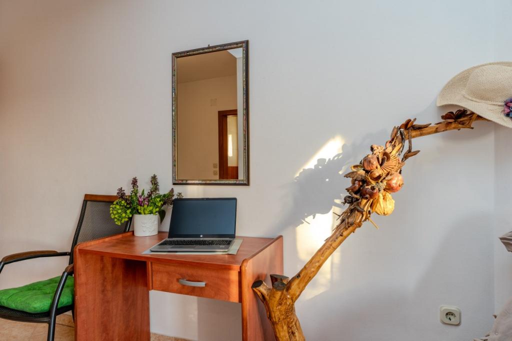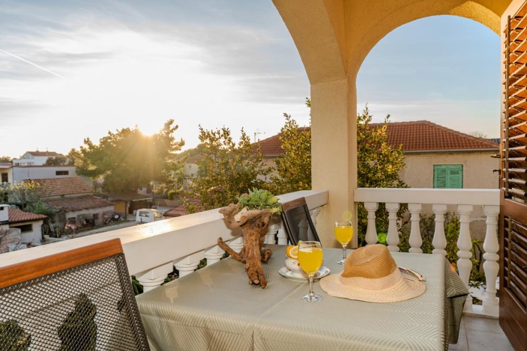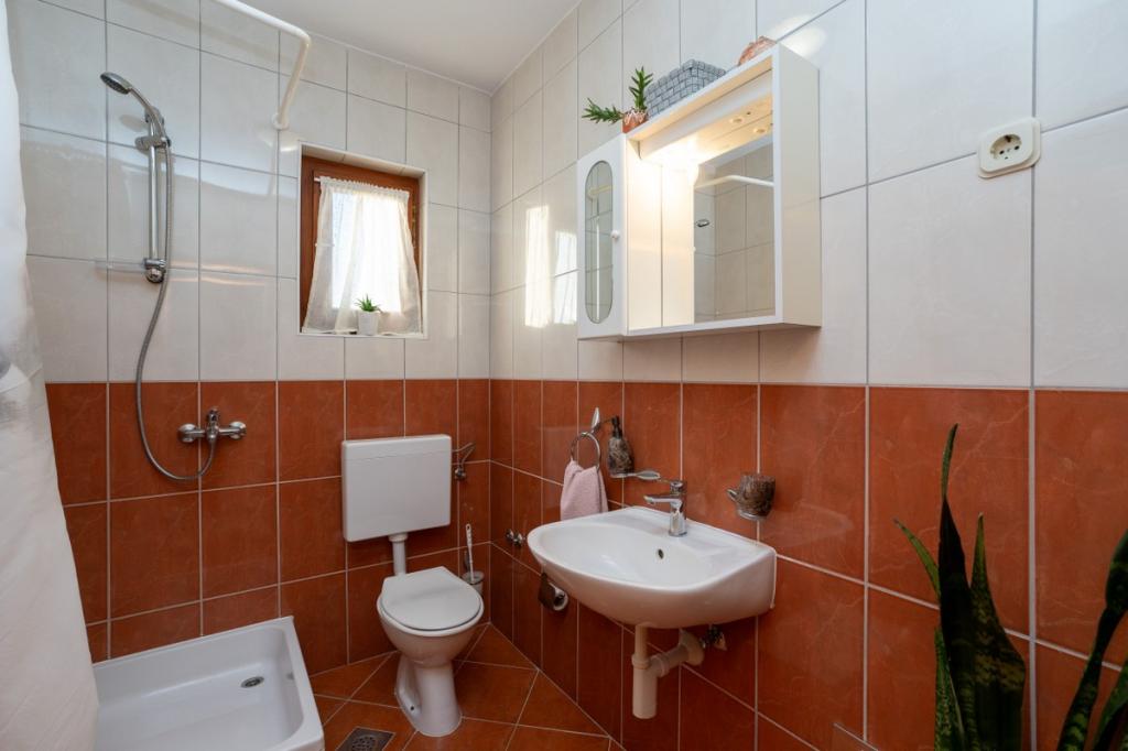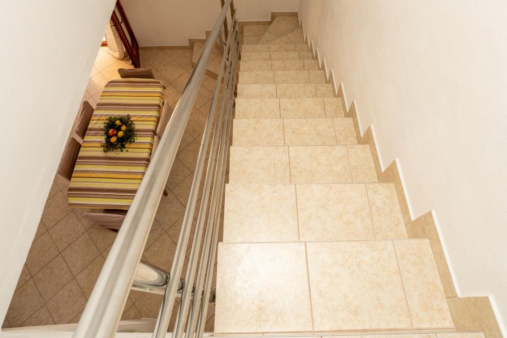 V samem središču Dalmacije in jadranske obale se nahaja čudovito mestece Pakoštane. Nahaja se med Jadranskim morjem in Vranskim jezerom, ki ga odlikuje bogata naravna dediščina. Čudovite peščene plaže, otoki in zalivi so tisto, zaradi česar je ta kraj še posebej privlačna destinacija. Prav tako so naše tradicije, dogodki in dalmatinske specialitete tisto, kar vsakega gosta pusti brez sape. V naši ponudbi vam ponujamo prijetno in mirno namestitev v rumeni dvonadstropni hiši, ki je od morja oddaljena 300 m. Okoli hiše je vrt, poln cvetja in zelenja. Parkiranje je zagotovljeno na dvorišču hiše. Naša gostoljubnost navdušuje številne goste, ki si vsega zapomnijo in se odločijo, da se bodo vrnili.