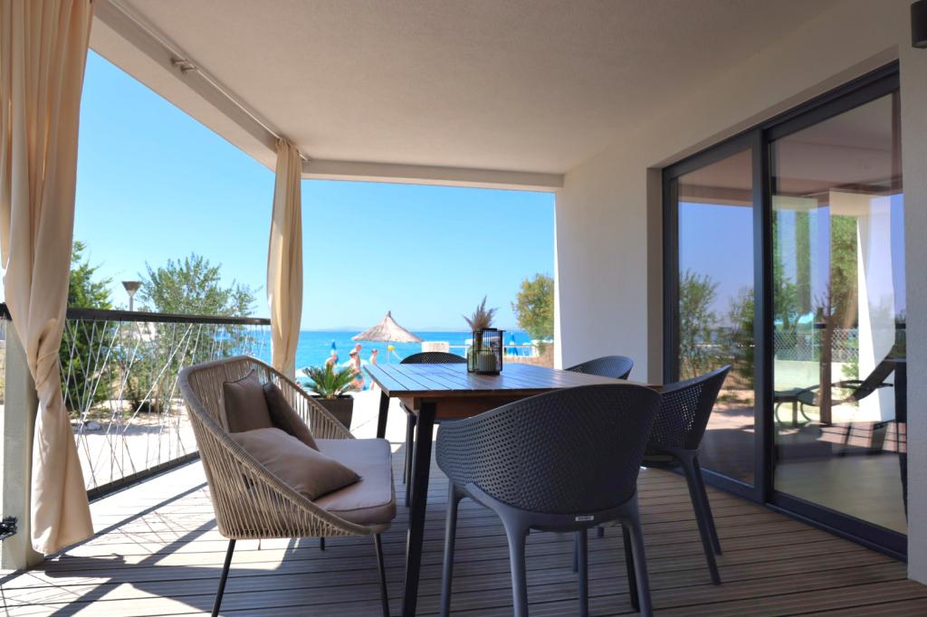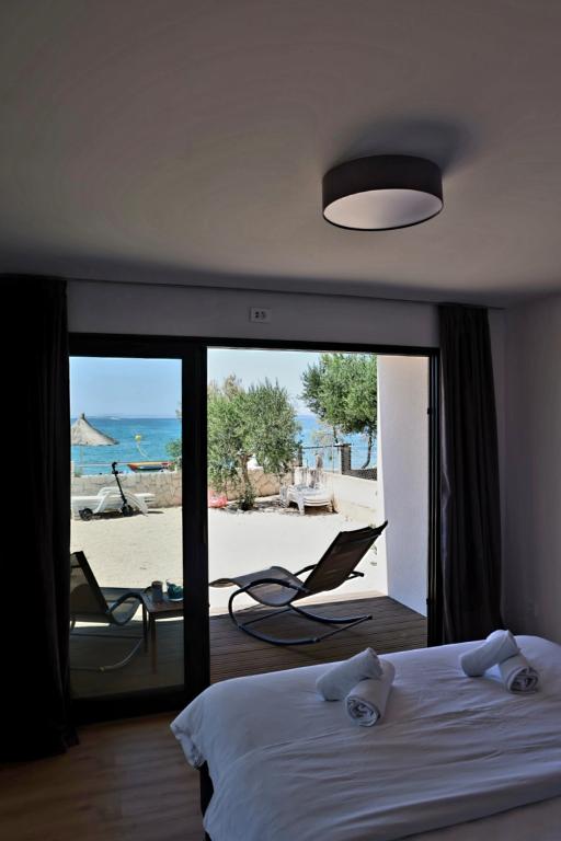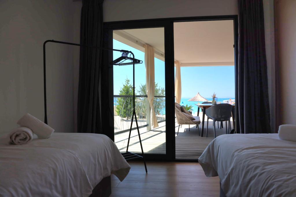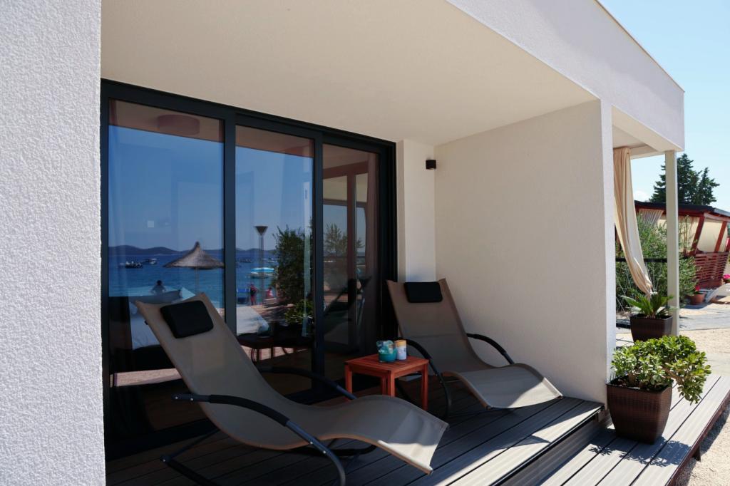 Na čudoviti plaži so na voljo mobilne hišice za najem. Hiše so moderno in luksuzno urejene, sestavljene so iz velike spalnice s kopalnico, spalnice, kuhinje, dnevne sobe in kopalnice ter terase 20 m2 s čudovitim pogledom na morje in bližnje otoke. Mobilne hišice so klimatizirane, imajo TV in internet. Kuhinja je popolnoma opremljena in vključuje; električna pečica, pomivalni stroj, aparat za kavo, pralni stroj, velik hladilnik, kuhalnik vode, posoda... Posteljnina in brisače so vključene. Hiše se nahajajo v mirnem delu mesta in so od centra oddaljene 5 minut hoje.