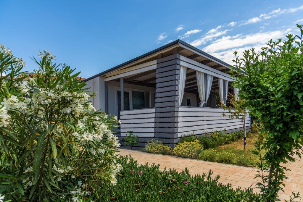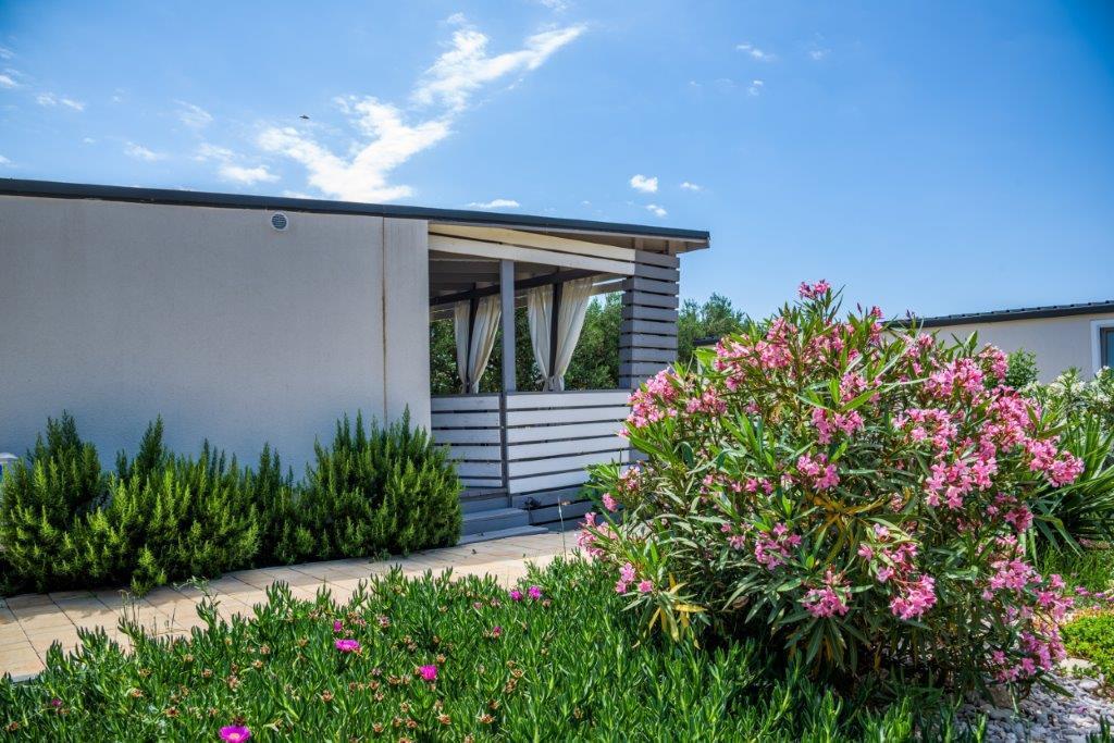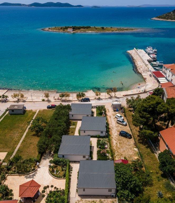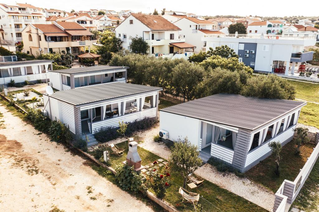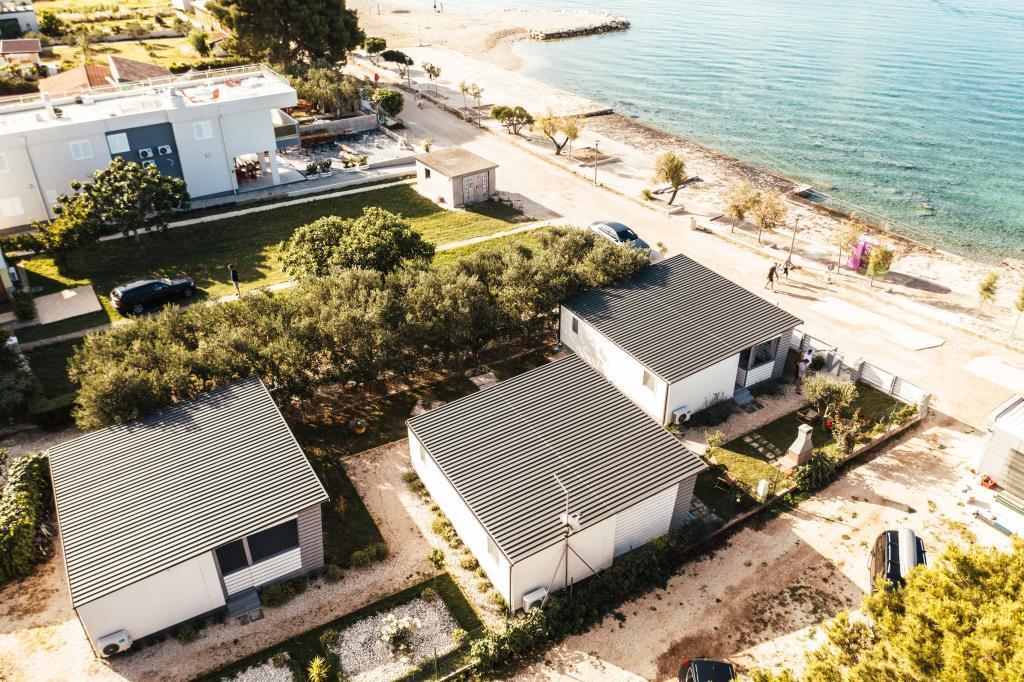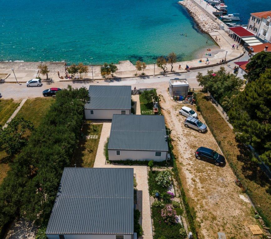 Mobilne hišice se nahajajo v središču Pakoštanov, tik ob glavni peščeni plaži z neposrednim pogledom na morje. Mobilna hišica ima dve spalnici, jedilnico, kuhinjo, stranišče in veliko teraso (5). Vsi gostje imajo na voljo žar. Gostom je na voljo parkirno mesto. Hišni ljubljenčki so dovoljeni, vendar se zaračuna doplačilo 7 €/noč na hišnega ljubljenčka. Imamo lasten privez za čolne in parkirišče za prikolice, ki sta gostom na voljo za doplačilo.