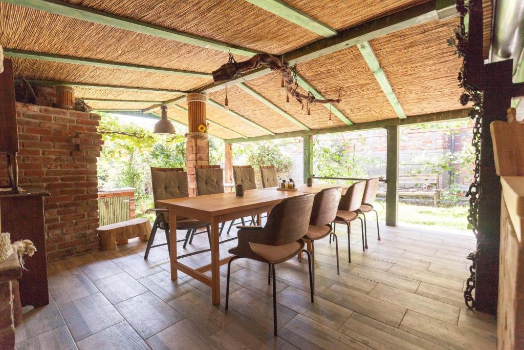 Počitniška hiša vsebuje dve sobi in galerijo z zakonsko posteljo, dvoposteljno sobo z dvema ločenima ležiščema in pomožno ležišče za dve osebi. Ima dve kopalnici, kuhinjo in prostorno dnevno sobo. Možnost uporabe zunanjega bazena, savne in jacuzzija, wi-fi, max-tv, parkirišče. Obdana z zelenjem se nahaja pokrita zunanja terasa z žarom, pečjo, kotličkom, nabodali. Na voljo so družabne igre, karte, človek ne jezi se, badminton z mrežo, lok in puščica, pikado, trampolin in gugalnice za otroke.