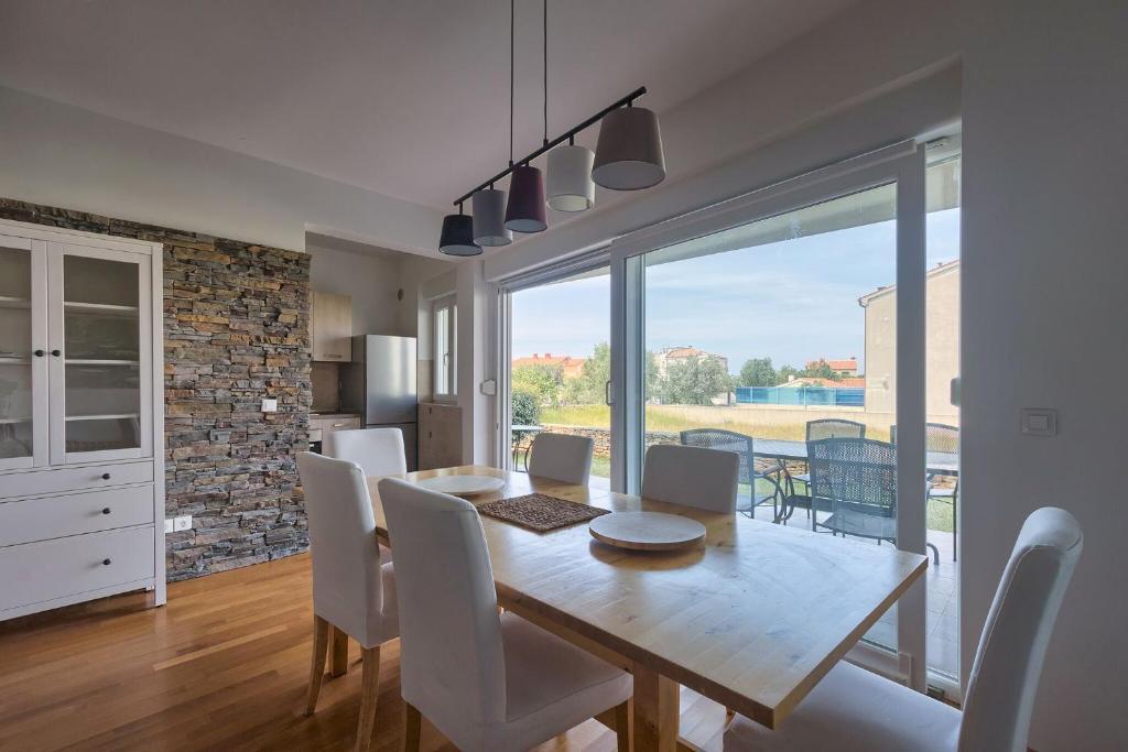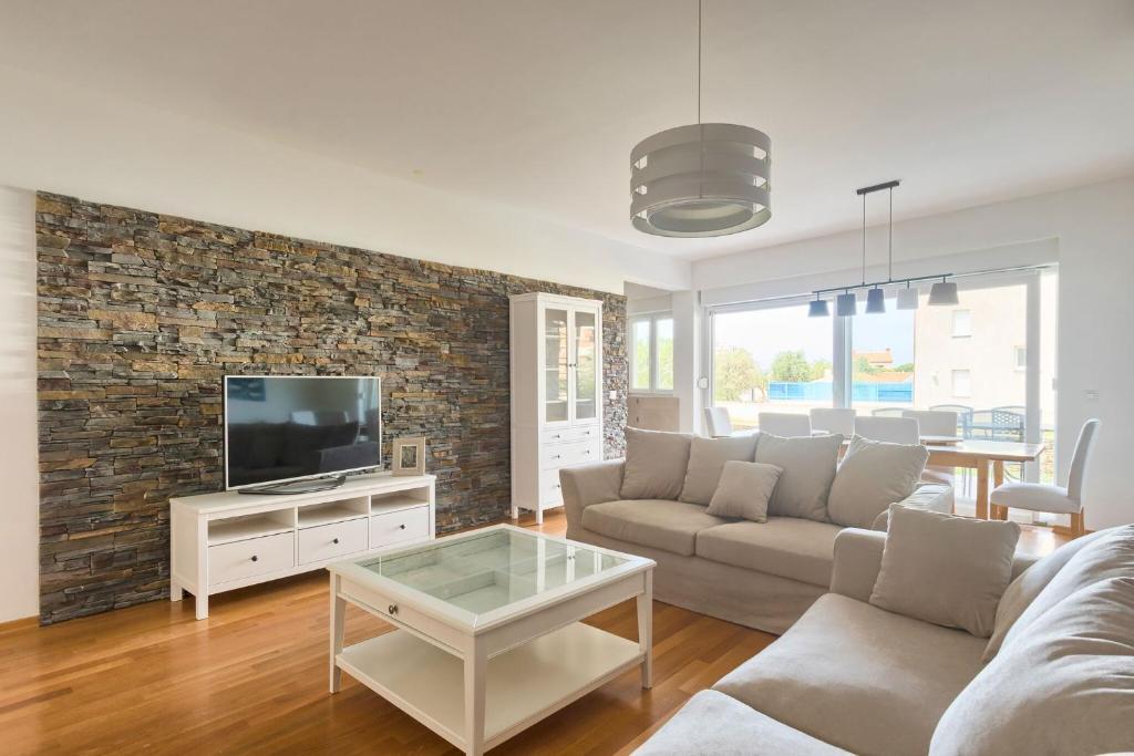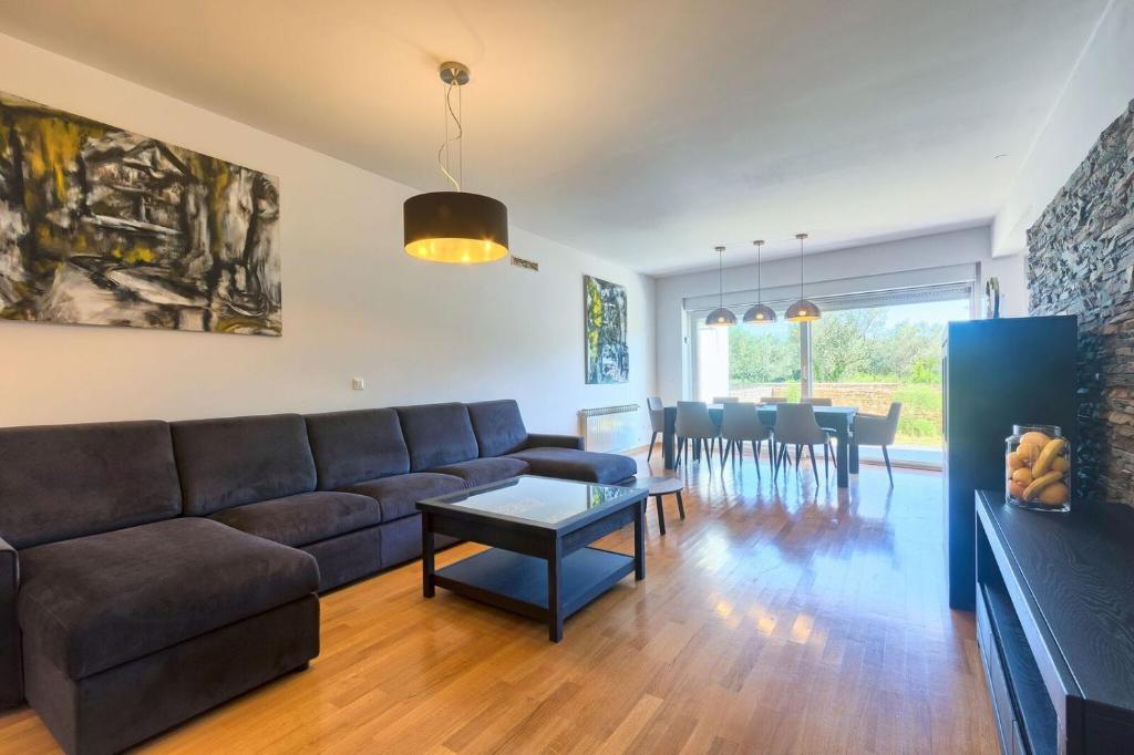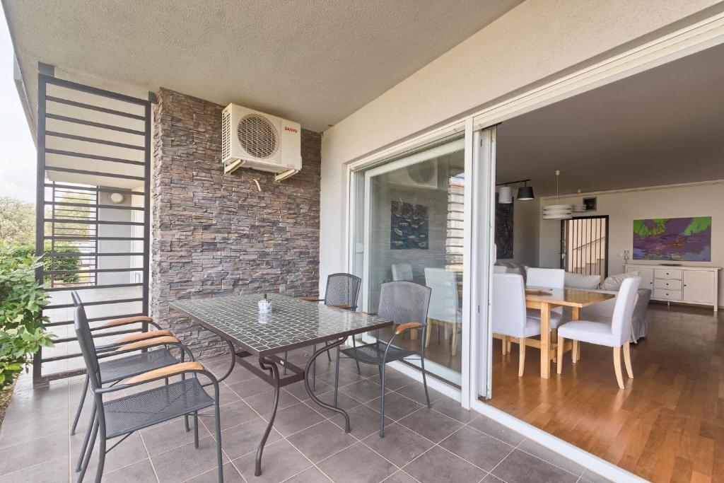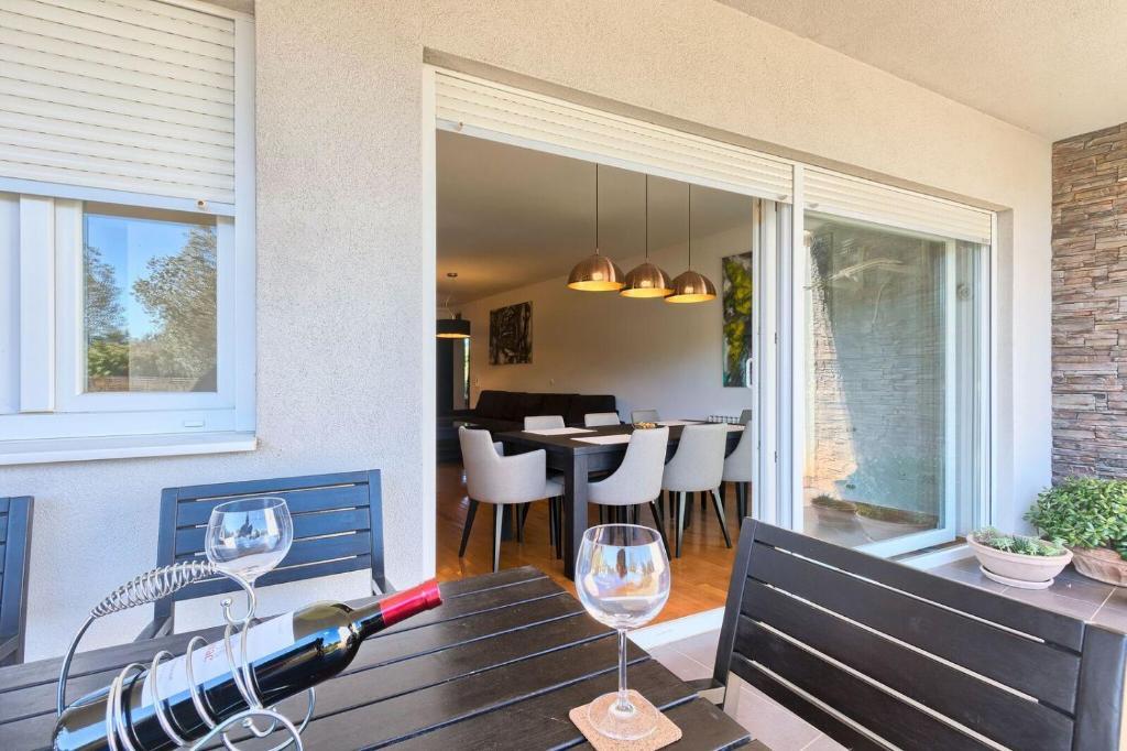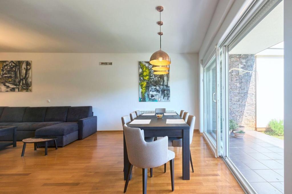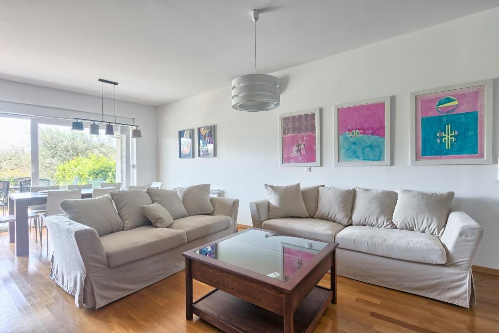 Turistična taksa nije vključena v ceno.Apartmaji obsegajo 3 prostorne spalnice, 1 stranišče opremljeno s pralnim strojem, 1 kopalnico z straniščem, opremljeno kuhinjo s pečico in pomivalnim strojem, dnevno sobo, teraso z vrtom, skupno letno kuhinjo in parkirno mesto. . Opremljene so z modernim pohištvom, klimatsko napravo, WiFi in Smart TV. Brisače in posteljnina so vključeni v ceno. Če se naveličate pripravljanja obrokov v apartmaju, lahko pečete na žaru na skupnem vrtu ali pečete v naši letni kuhinji! :)