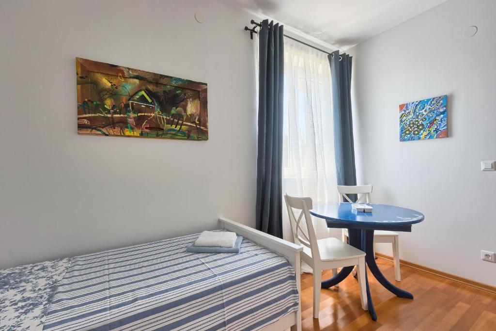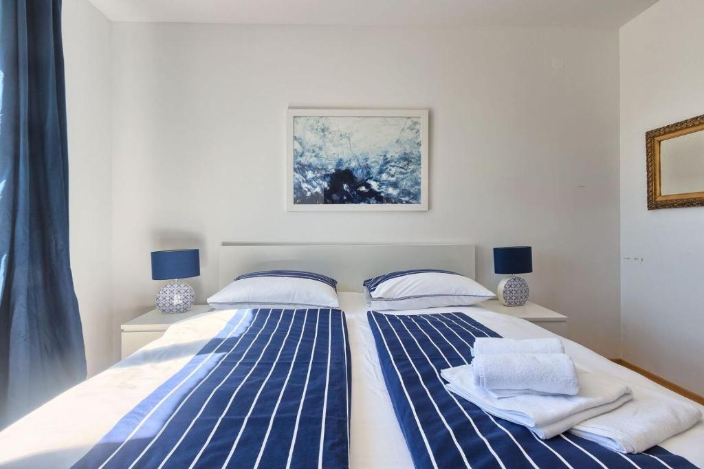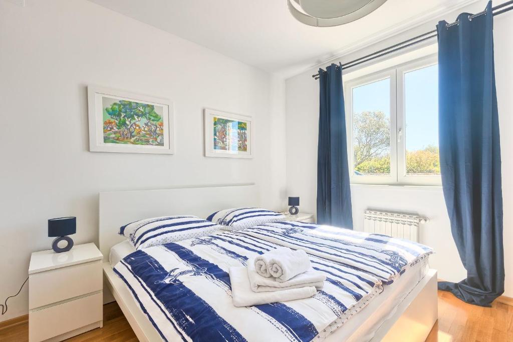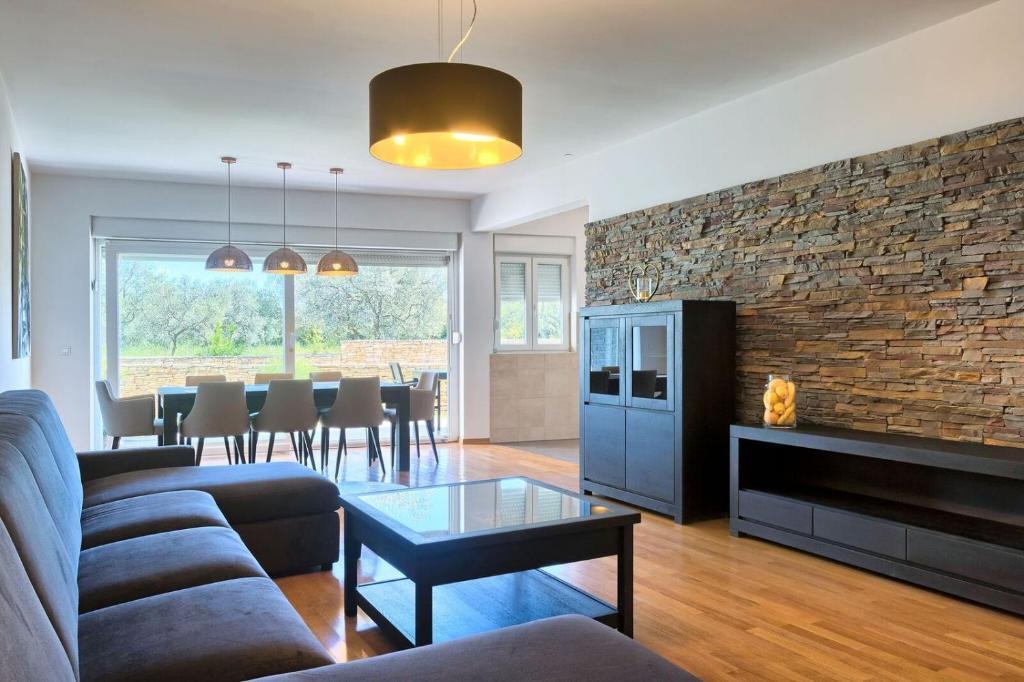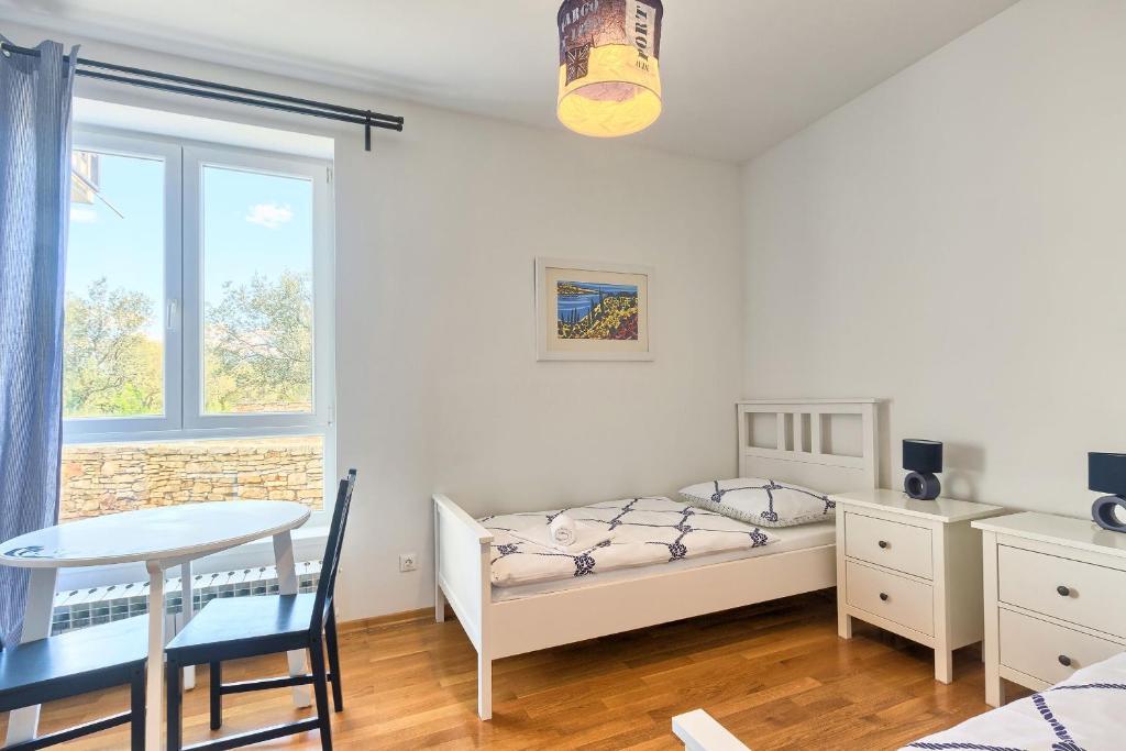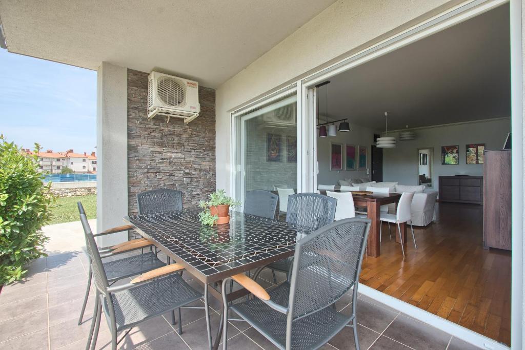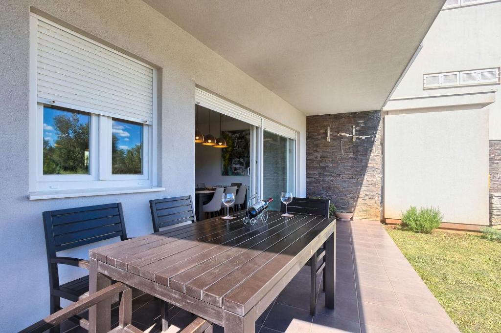 Turistična taksa nije vključena v ceno.Apartmaji obsegajo 3 prostorne spalnice, 1 stranišče opremljeno s pralnim strojem, 1 kopalnico z straniščem, opremljeno kuhinjo s pečico in pomivalnim strojem, dnevno sobo, teraso z vrtom, skupno letno kuhinjo in parkirno mesto. . Opremljene so z modernim pohištvom, klimatsko napravo, WiFi in Smart TV. Brisače in posteljnina so vključeni v ceno. Če se naveličate pripravljanja obrokov v apartmaju, lahko pečete na žaru na skupnem vrtu ali pečete v naši letni kuhinji! :)