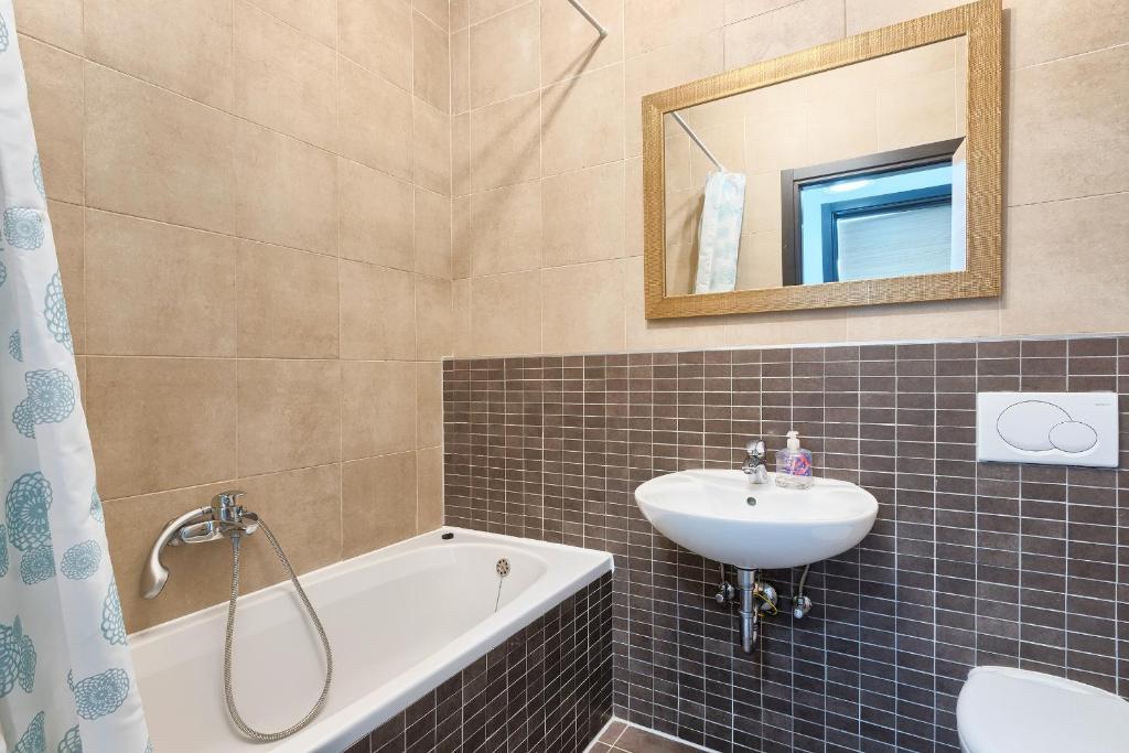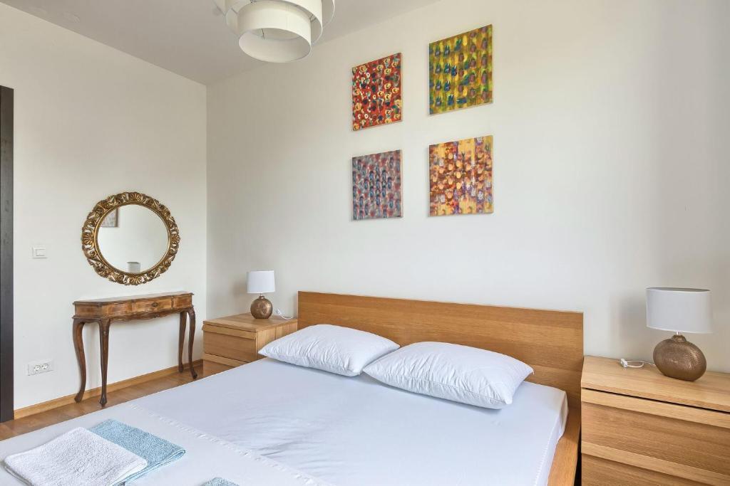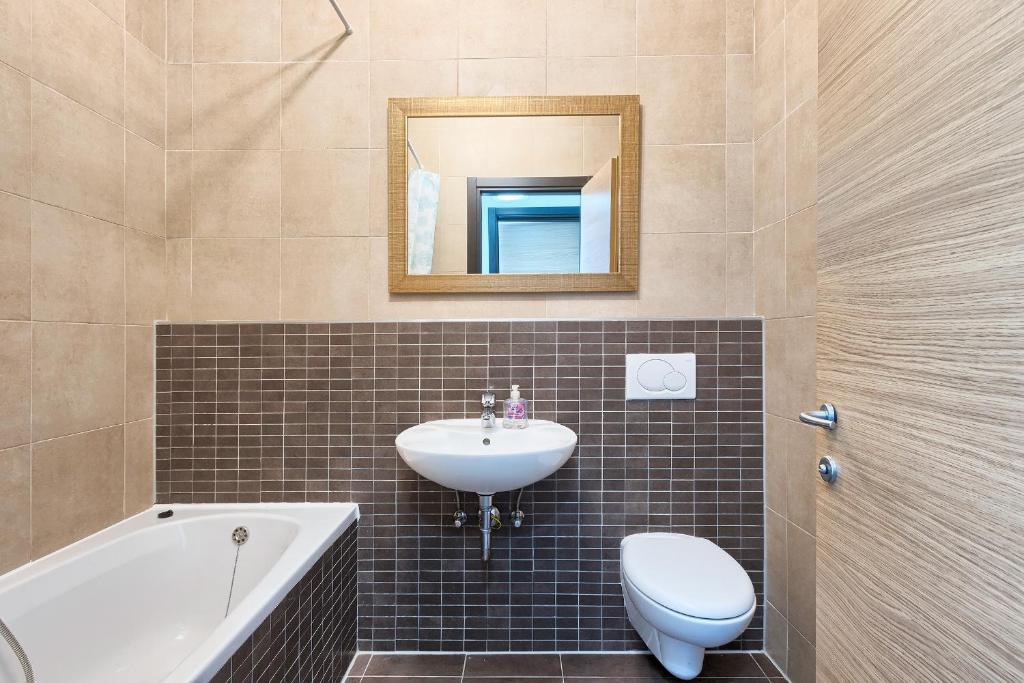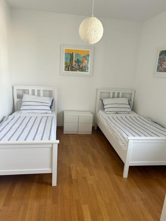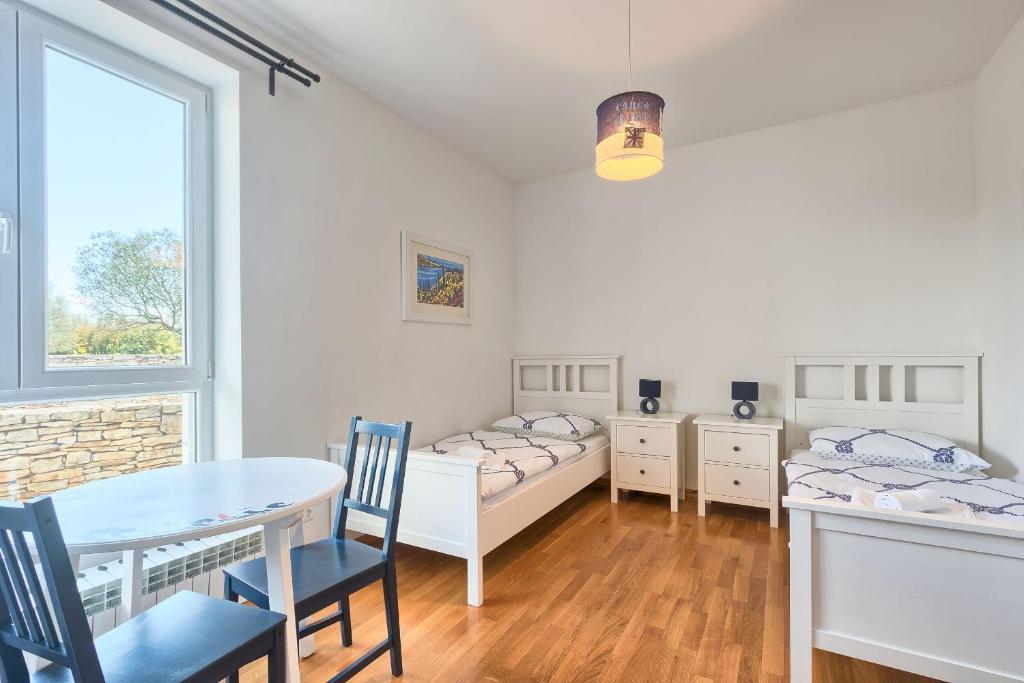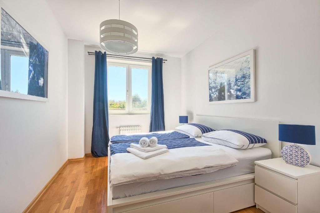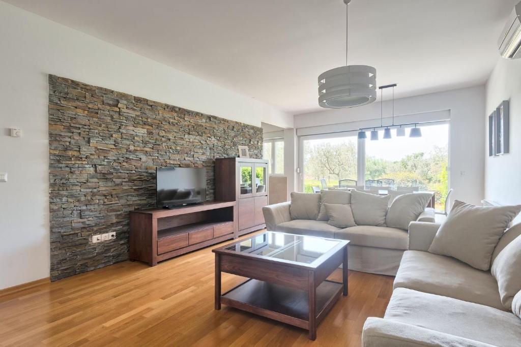 Turistična taksa nije vključena v ceno.Apartmaji obsegajo 3 prostorne spalnice, 1 stranišče opremljeno s pralnim strojem, 1 kopalnico z straniščem, opremljeno kuhinjo s pečico in pomivalnim strojem, dnevno sobo, teraso z vrtom, skupno letno kuhinjo in parkirno mesto. . Opremljene so z modernim pohištvom, klimatsko napravo, WiFi in Smart TV. Brisače in posteljnina so vključeni v ceno. Če se naveličate pripravljanja obrokov v apartmaju, lahko pečete na žaru na skupnem vrtu ali pečete v naši letni kuhinji! :)