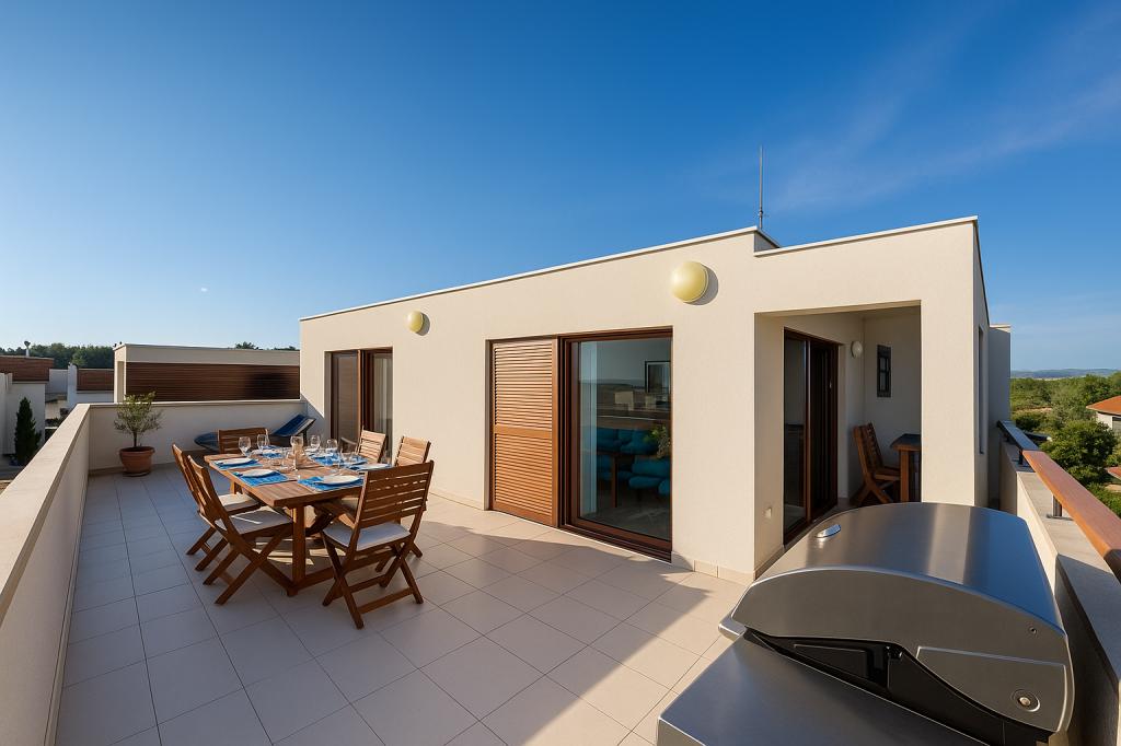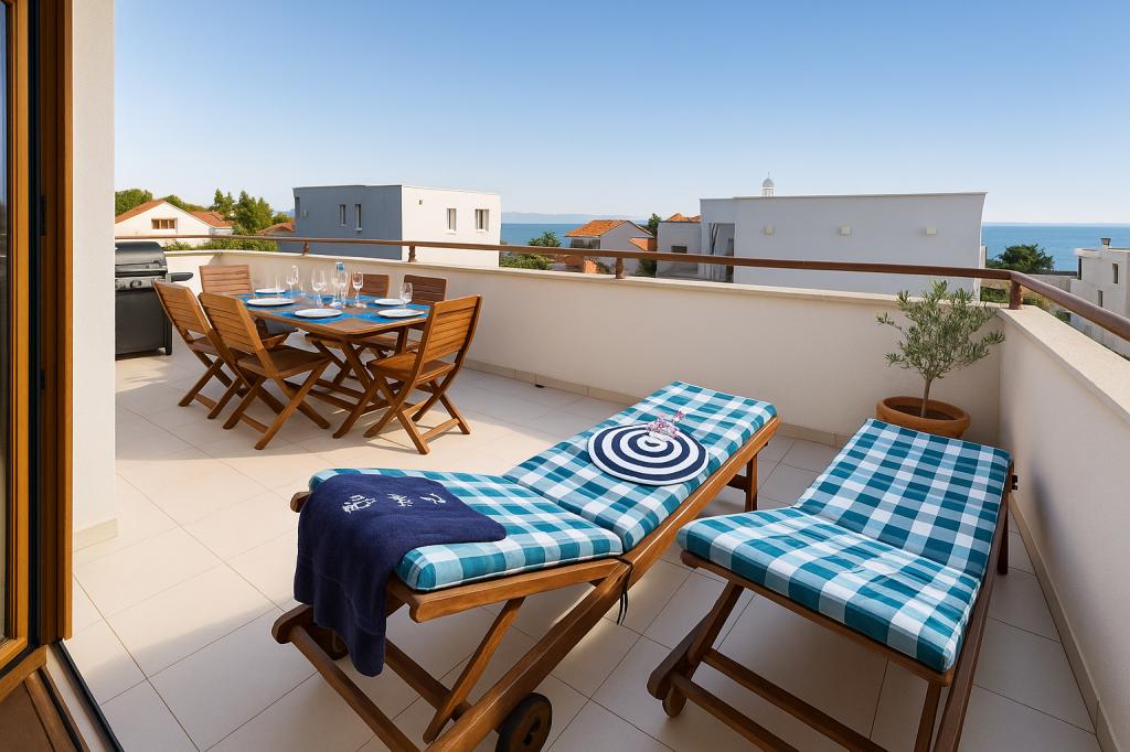 Nastanitev Aquamarine Deluxe Penthouse Apartment se nahaja v Petrčanih, 250 m od plaže Punta Radman, 350 m od plaže Pinija in 200 m od avtobusne postaje Petrčane. Ponuja opremo za peko na žaru in teraso. Ta klimatizirana nastanitev se nahaja 150 m od plaže Pineta in vključuje brezplačen WiFi ter zasebno parkirišče. Apartma ima 3 spalnice, 1 kopalnico, posteljnino, brisače, TV z ravnim zaslonom s satelitskimi programi, jedilnico, popolnoma opremljeno kuhinjo in balkon s pogledom na morje. Najbližje letališče Zadar je oddaljeno 23 km, apartma pa z doplačilom organizira prevoz od/do letališča.