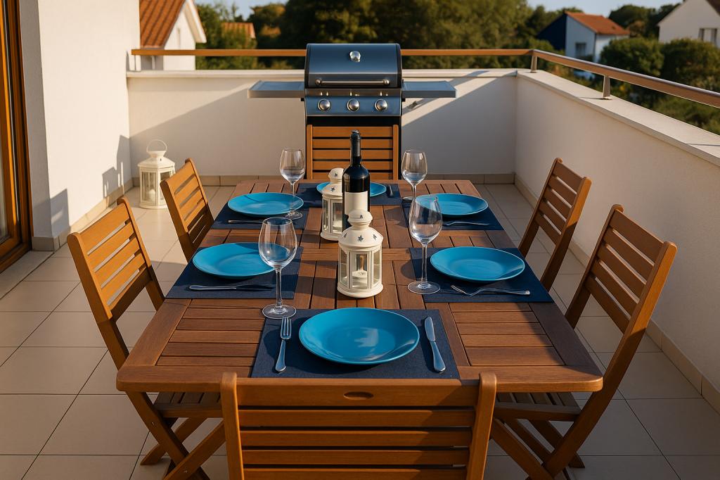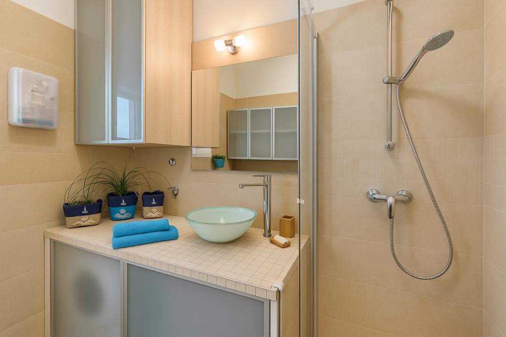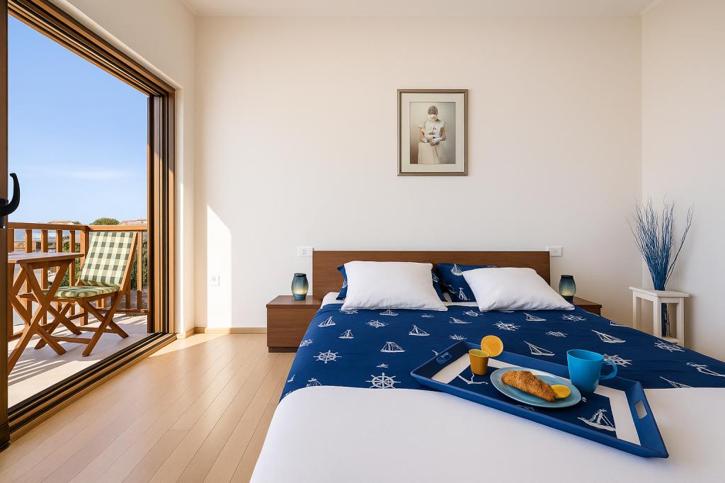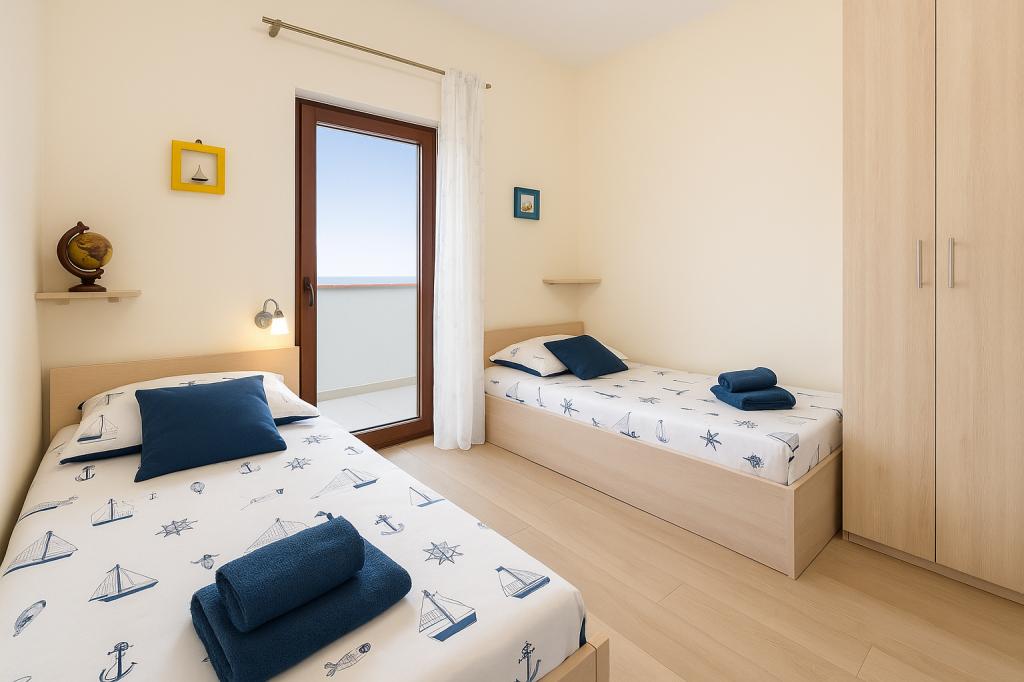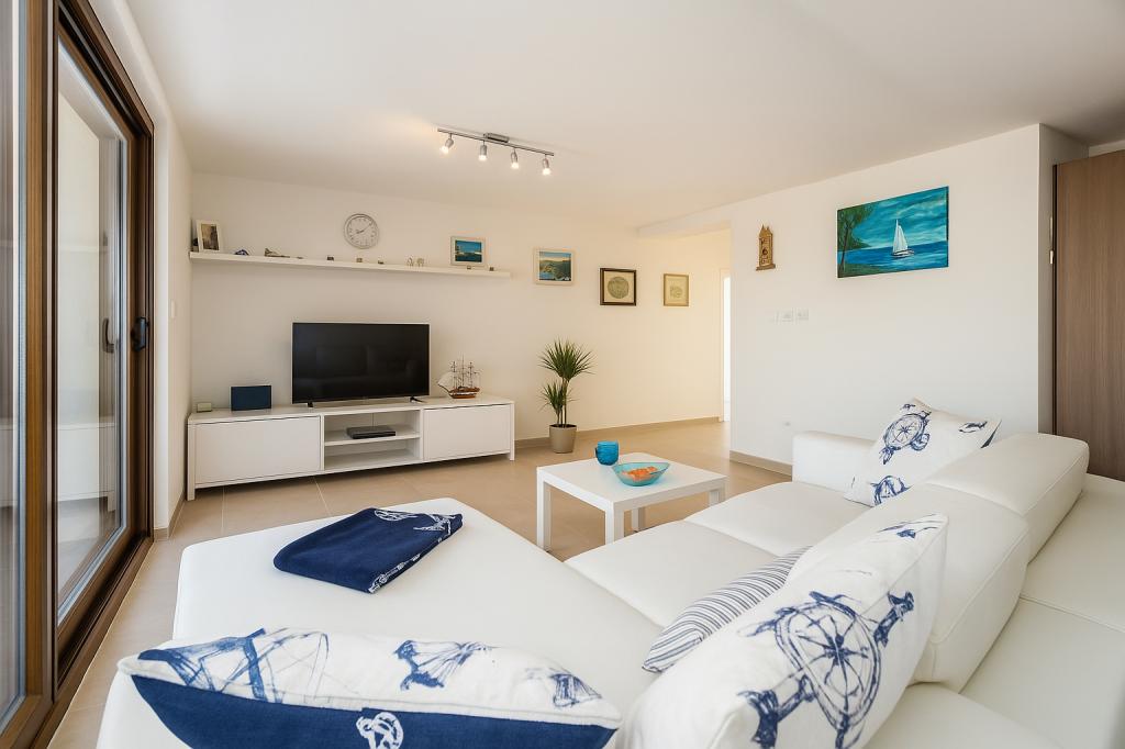 - Pogled na morje - Parkirišče - 3 spalnice - 1 kopalnica - Klimatska naprava - Velika terasa - Žar - Pomivalni stroj - Pralni stroj - Raztegljiv kavč - Opremljena kuhinja - Internet - Televizija (satelit)