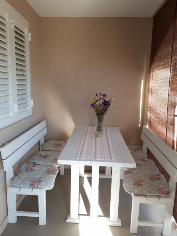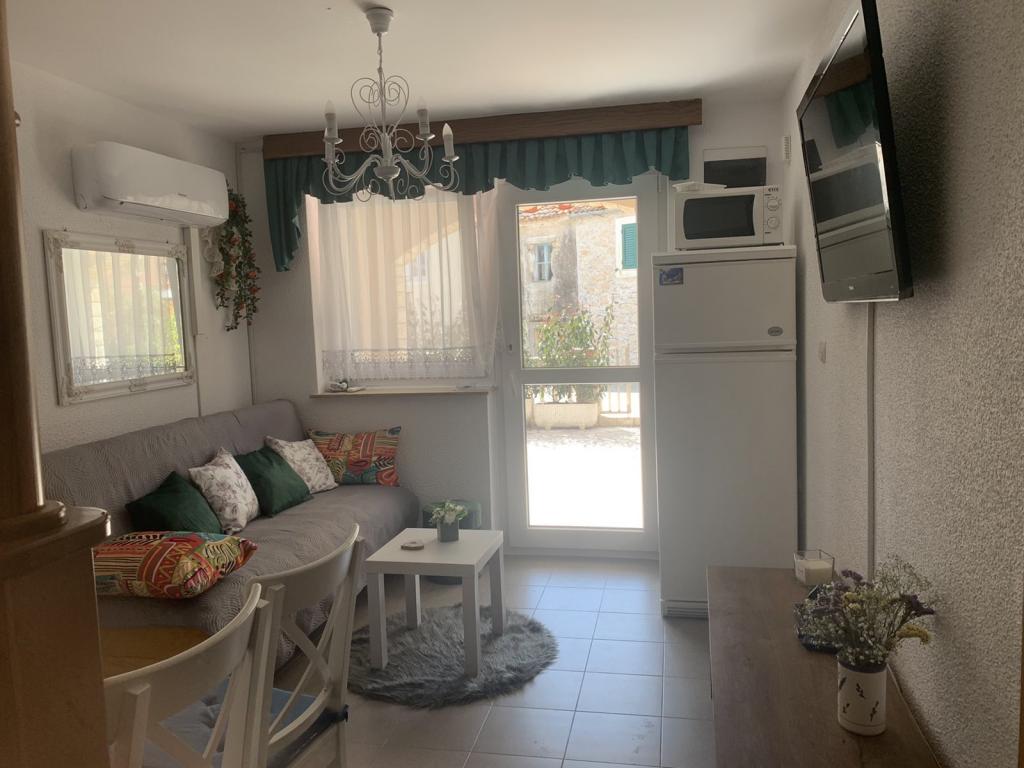 Apartma v centru mesta, 100 metrov od morja, na vrhu mesta. Objekt je nov, odlično urejen in opremljen. Apartma se nahaja v samem središču vasi z lastnim velikim parkiriščem. Na terasi apartmaja je na voljo žar in zunanji tuš.