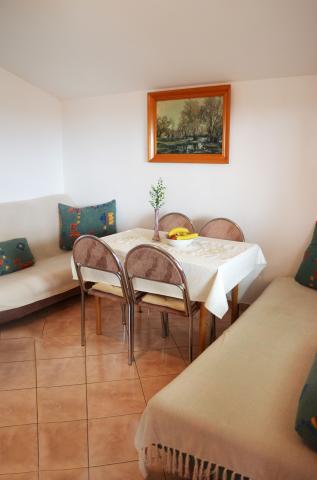 Mirno in mirno okolje, proč od objektov (restavracije, trgovine in plaže). Na plaži je treba voziti avto (3-4 min.), Hoja (30 minut). Apartma je idealen za družine, ki želijo zasebnost in tišino. Lastniki so prijazni, ustrežljivi in zelo prijazen. Stanovanje je dobro opremljena primerno za pet oseb, z možnostjo spremembe rabe samooskrba in pralnim strojem. Sredstvo ima balkon s čudovitim pogledom na morje. Objekt je tudi košarkarski obroč.