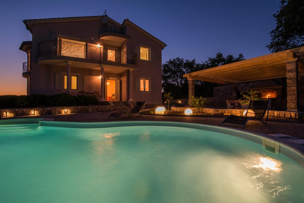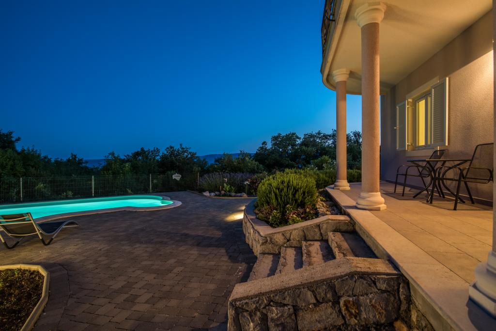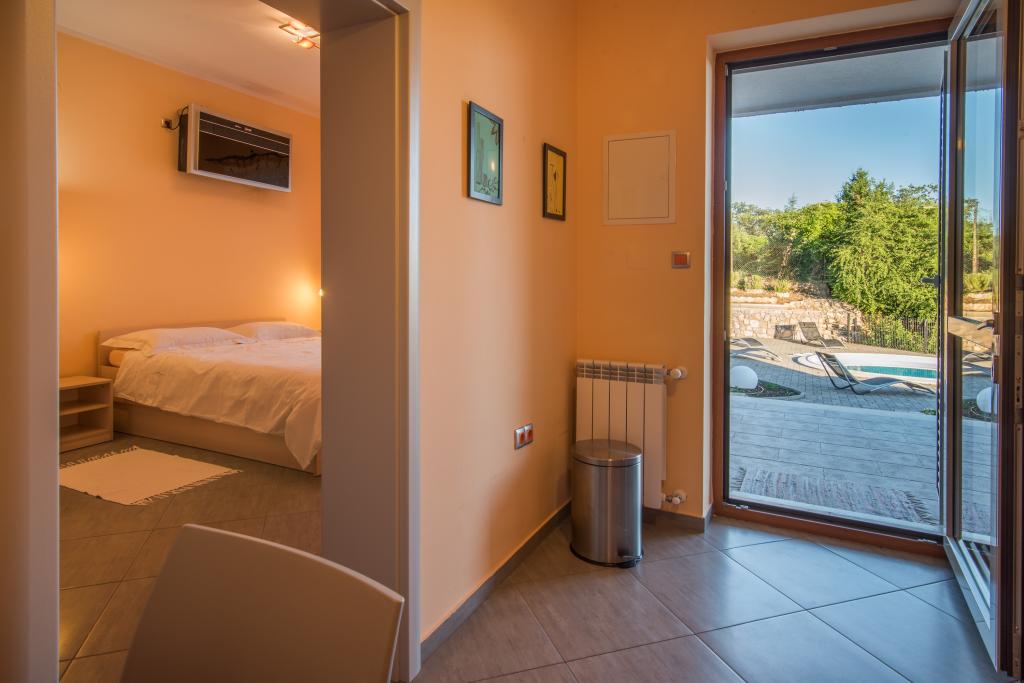 Vrhunsko opremljen apartma v novi vili za 4 + 1 osebo Ločen vhod in terasa Bazen in velik žar Obdan z mediteranskim rastlinjem, oljkami, starimi hrasti in cvetjem Zelo miren kraj z zasebnostjo
