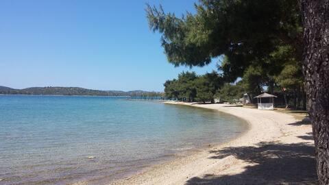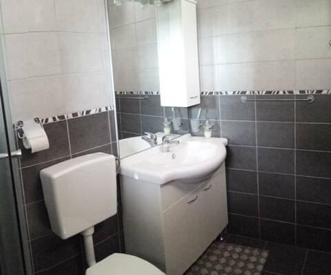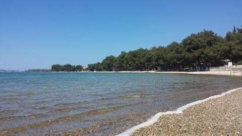 Moderen apartma za 4+1 osebo v novozgrajeni hiši, ki se nahaja v slepi ulici brez prometa, idealen kraj za počitnice. Glavna plaža in center sta oddaljena le 10 minut hoje.