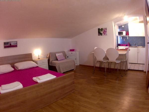 Turistična taksa je vključena v ceno. Dokument o potrditvi rezervacije ob rezervacijiKako so nas ti čudoviti ljudje sprejeli, ne morem opisati z besedami, čudoviti, prijazni, vedno na voljo. Sploh nismo dobro prispeli, gostitelj gospod Neven je kot mladenič odnesel 2 kovčka v 1. nadstropje do apartmaja, ponujal fige.. tudi čudovita in draga žena Snježana. Apartma je opremljen kot bi bil doma, kup posode, brisače.. Čisto in urejeno kot lekarna. Plaža, center in trgovina Plodine so oddaljeni približno 10 minut hoje. Zelo smo zadovoljni, zagotovo bomo spet prišli.