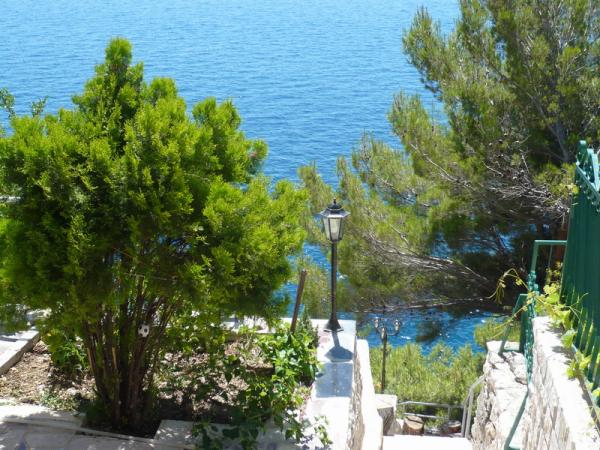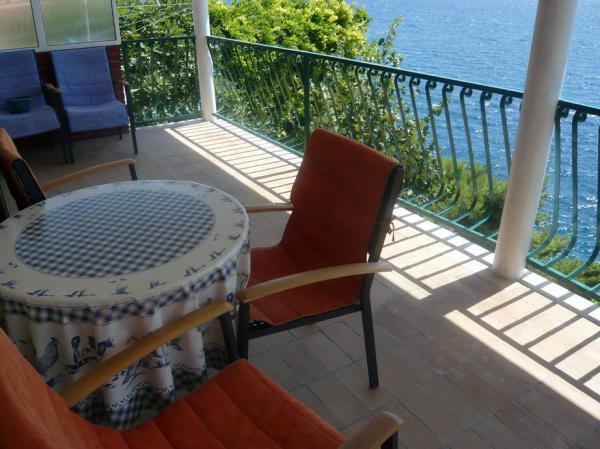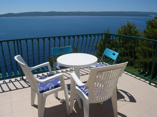 Popolnoma opremljeni apartmaji v prvi vrsti do morja, s prostornimi terasami, v vseh apartmajih. Zasebni stopnice do morja. Lep razgled na morje iz vseh apartmajev. Zunanji tuš, žar in luč za nočno kopanje na voljo za naše goste. Mirno območje. Car dostop do lastnine.