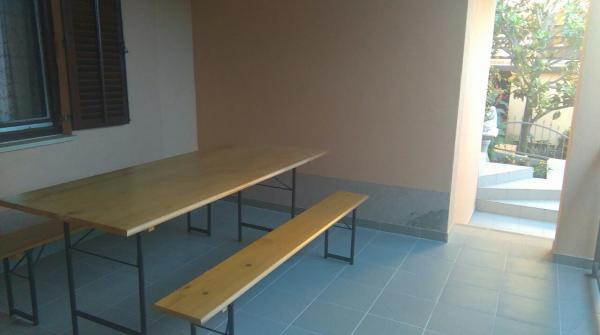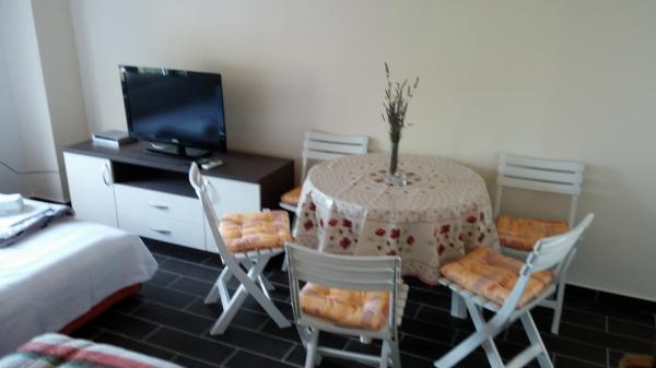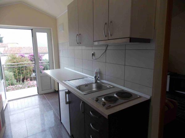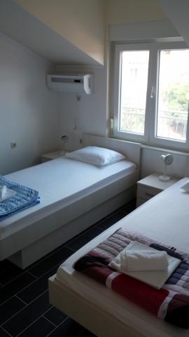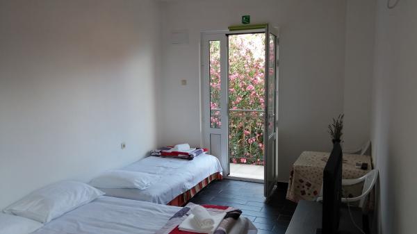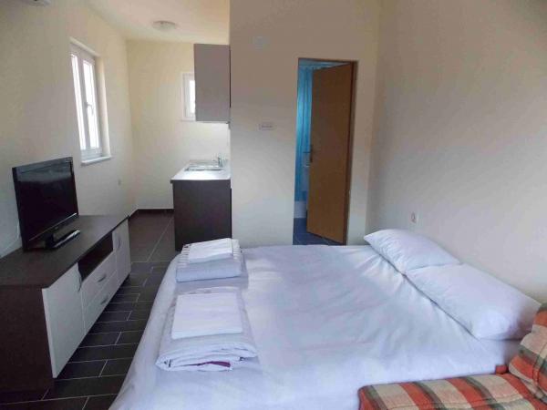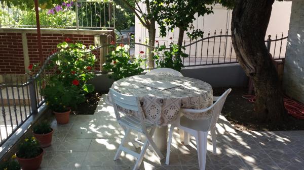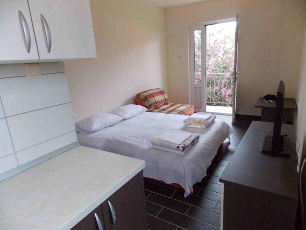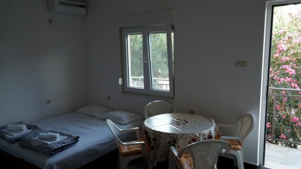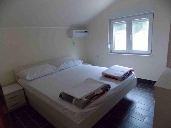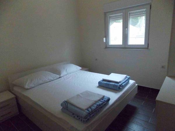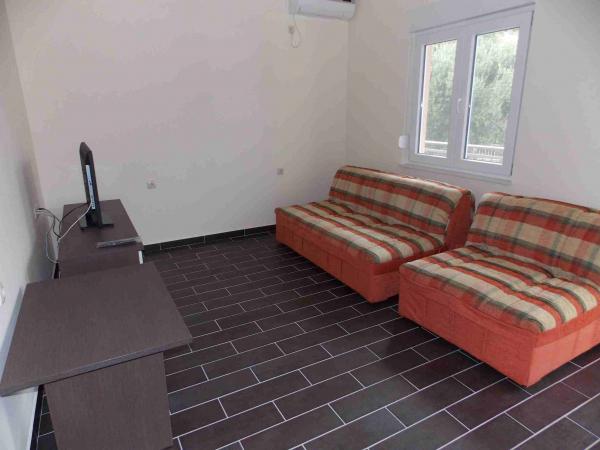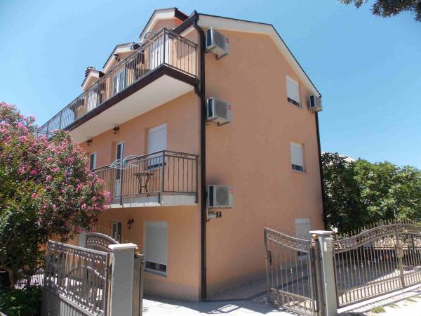 Apartmaji se nahajajo v centru podatkov. So se nahaja 100m od morja in lepih plaž. Trgovina, pošta, športno igrišče, cerkev, avtobusna postaja in izmenjave v polmeru 40 m od apartmaja. Objekt je sestavljen iz štirih apartmajev, dva ločena apartmaja za dve osebi z dodatnim ležiščem, en apartma za dve osebi s tremi dodatnimi ležišči in velik apartma za štiri osebe in tremi dodatnimi ležišči. Apartmaji so novi in opremljeni s klimatsko napravo, TV, kopalnico in kuhinjo. Apartmaji imajo uporabo dveh teras in dvorišče z žarom v senci. Gostje parkirišče je na voljo, in cena vključuje turistično takso. Posteljnina in brisače so vključene in se menjajo vsakih sedem dni.