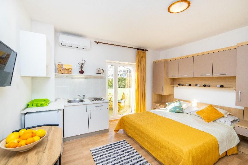 Apartmaji se nahajajo na mirni lokaciji 50m od morja. V bližini so trgovine, pošta in zdravstvena ustanova. Parkirišče je zagotovljeno. Wi-fi in klima vključena v ceno.