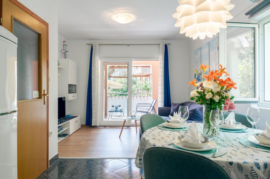 Preživeli smo čudovit teden. Apartma A4 prostorna in lepa kuhinja zelo dobro opremljena. Povsod v bližini. Lastnik je prijazen in Podgora je lepa. Mesto vredno priporočiti.
