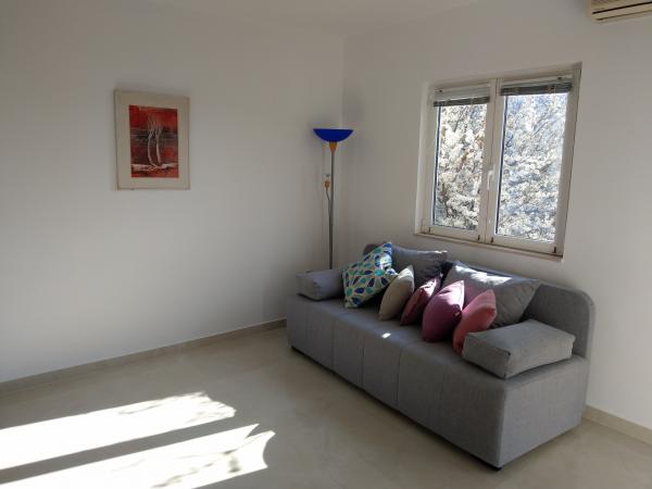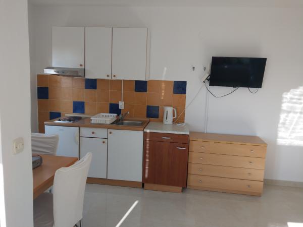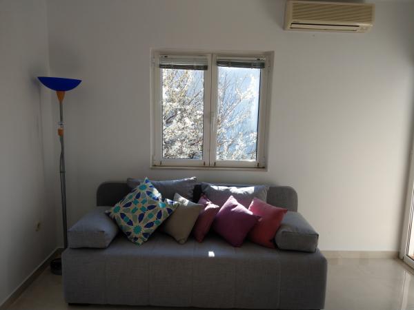 Apartmaji so 2 2, novi, udobni in popolnoma opremljeni. Hiša se nahaja ob strani glavne ceste (vhod na ograjeno parkirišče od glavne ceste) s čudovitim pogledom na morje. Objekt je 5 minut hoje do plaže in centra.