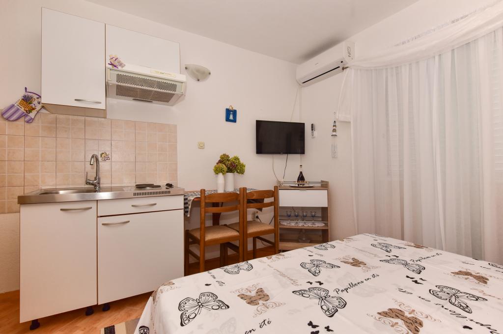 Udobni in opremljeni apartmaji v mirnem delu mesta. Objekt se nahaja 3 minute od morja, trgovin, kavarn in restavracij. Kraj je majhen in avto ni potreben za premikanje. Vse je največ 15 minut peš.