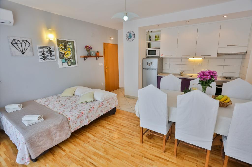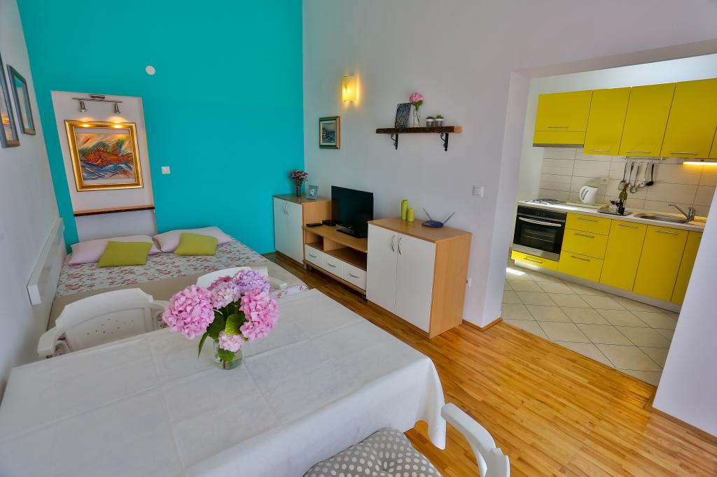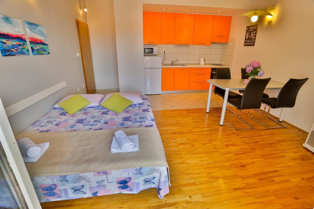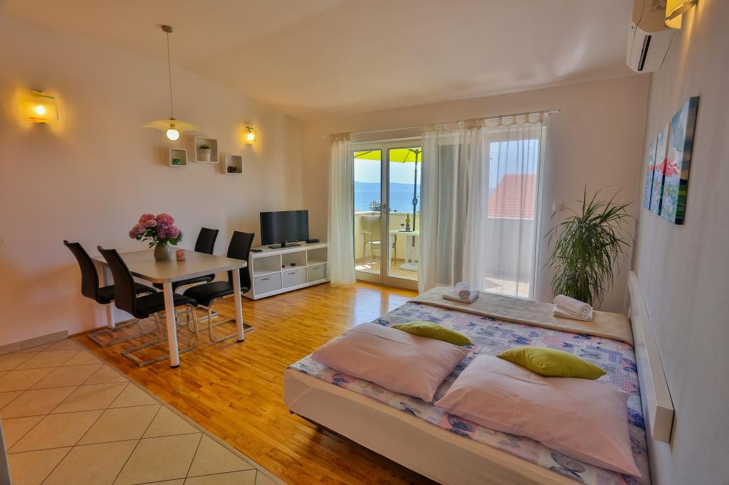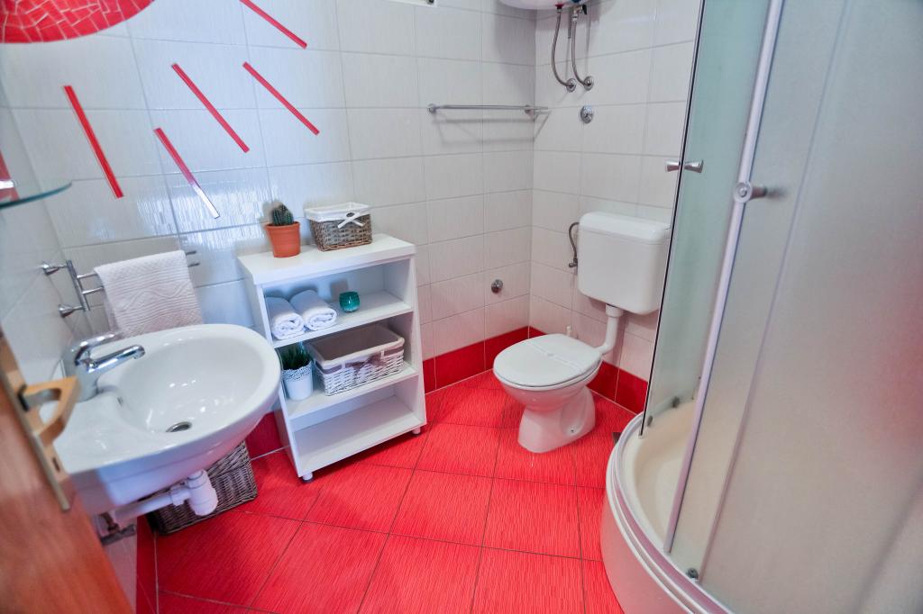 Dobrodošli! Cherry Apartmaji se nahajajo v Podstrana, le 10 km od zgodovinskega središča Splita (Dioklecijanove palače, pod zaščito Unesca) in 8 km od majhnega dalmatinskega mesteca Omiša reke Cetine, kjer boste lahko uživali na sprehodih, vožnja z ladjo, rafting in druge avanturistične dejavnosti. Avtobusna postaja se nahaja 100 m od hiše. Prodnata in peščena plaža je oddaljena le 50 metrov od hiše. Apartmaji so popolnoma opremljeni in nove. Oprema: TV, satelit, klima, brezplačen brezžični internet, pralni stroj, parkirišče, terasa, žar, senčniki, plaža stoli. Vsi apartmaji imajo balkon s pogledom na morje. Trgovina 100 m, restavracija 200 m od hiše, ATM 500m.