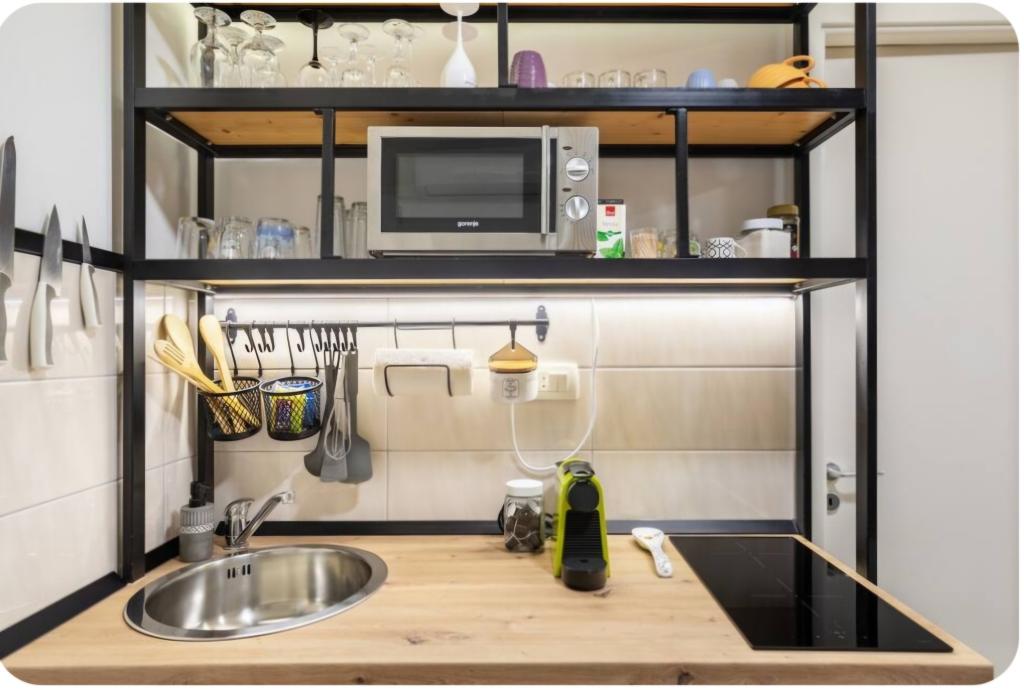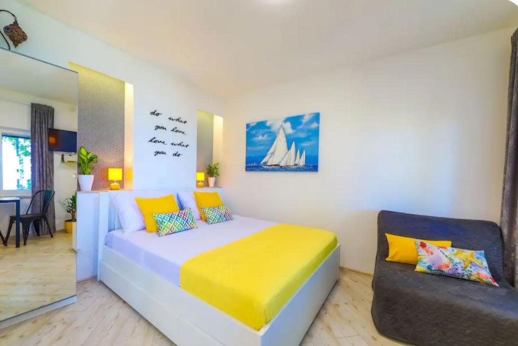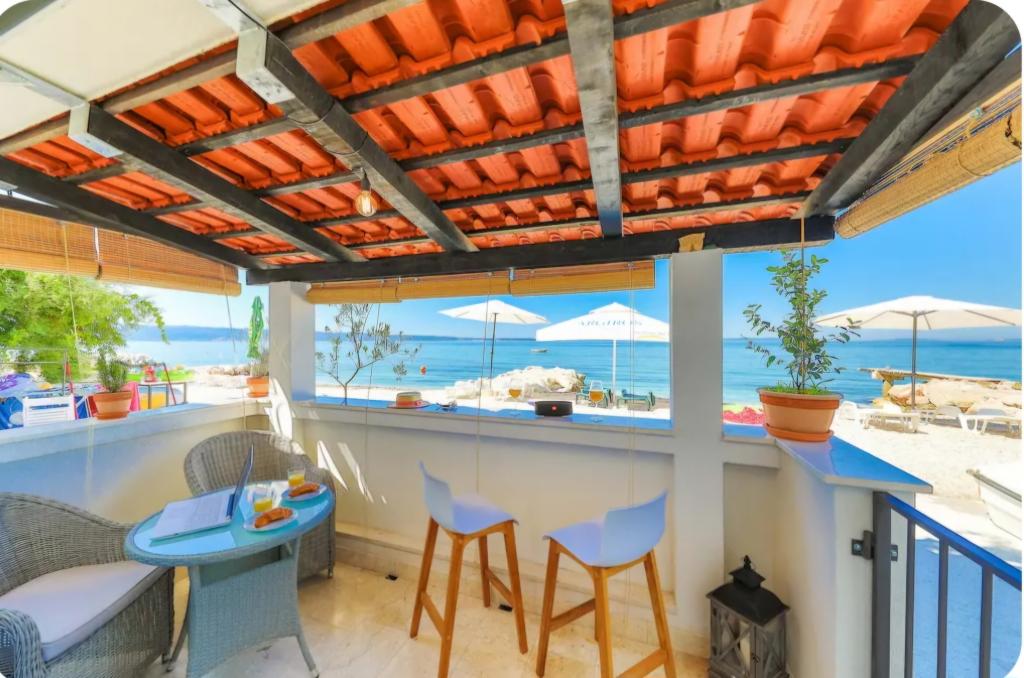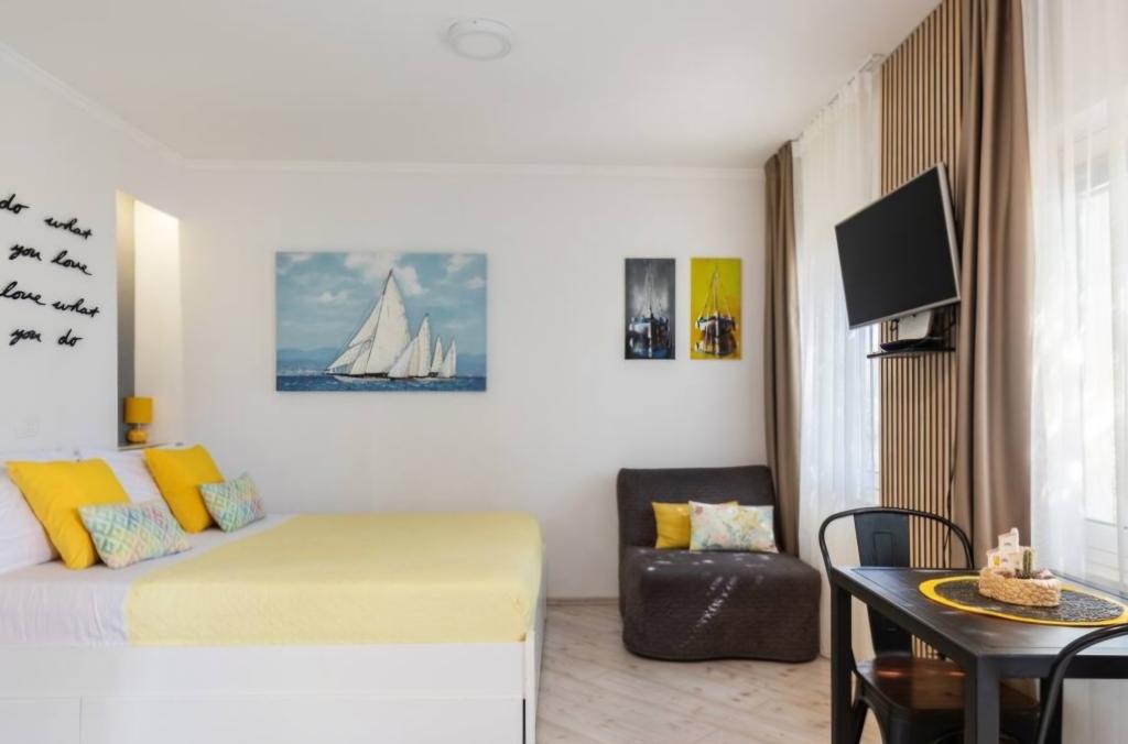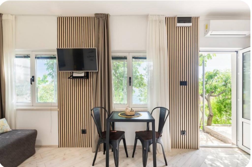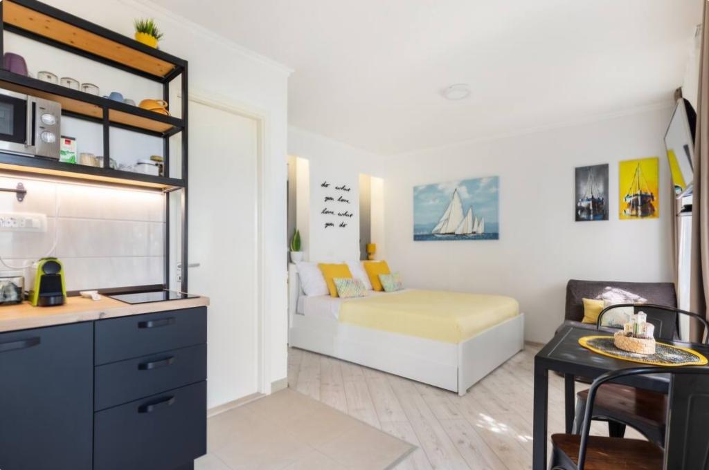Zelo očarljiva garsonjera, 30 metrov od morja. Apartma ima tudi zasebno parkirišče. Dnevni prostor na sproščujočem vrtu je tisto, zaradi česar stanovanje izstopa. V ceno so vključeni tudi ležalniki in senčniki.