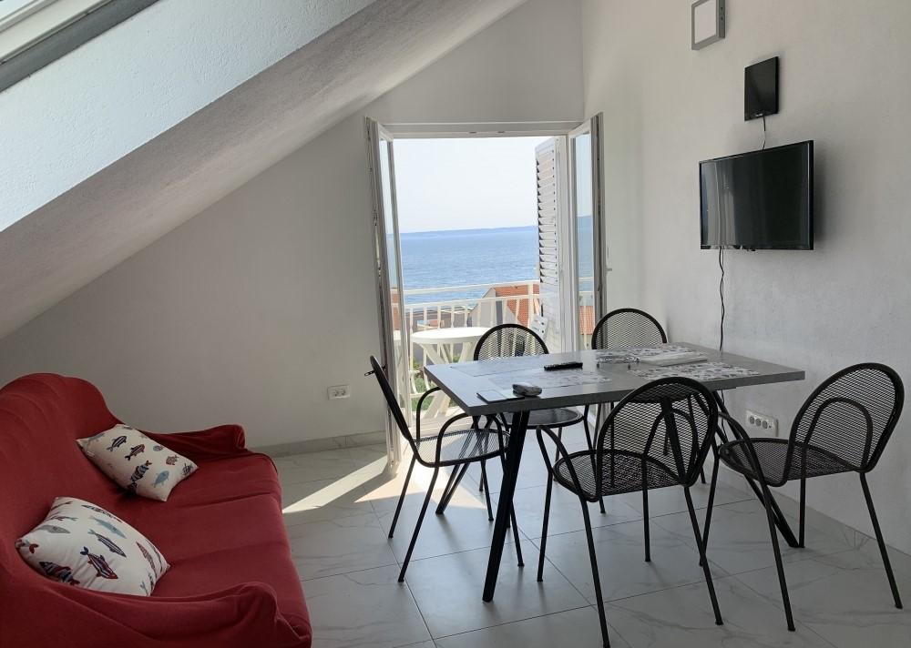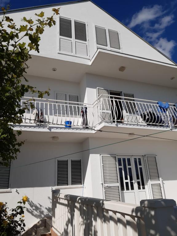 Dva apartmaja se nahajata v družinski hiši, ki se nahaja na mirni lokaciji. Hiša se nahaja 200 metrov od plaže. Apartmaji imajo balkone s pogledom na morje, ločene vhode in varovano parkirišče za goste. Površina: veliko stanovanje 80 m2 v prvem nadstropju in manjše stanovanje v mansardi 37 m2. Za informacije o nastanitvi in plaži povprašajte gostitelja.