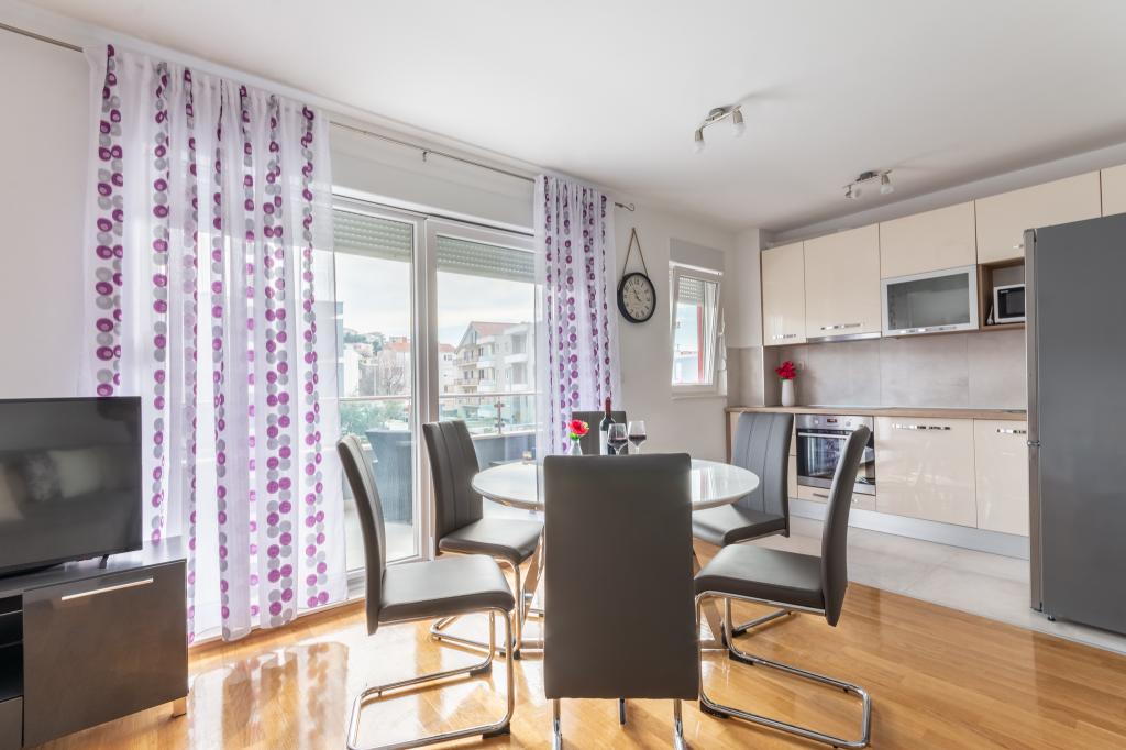 Popolnoma moderno luksuzno opremljeno stanovanje v mirnem delu Podstrane, lepo stanovanje se nahaja v novi stavbi z 2 spalnicama, dnevnim prostorom, kuhinjo, teraso, tv-wi-fi, pralnim strojem, klimatsko napravo, blizu plaže le 70 mt, zasebno parkirišče. V bližini je avtobusna postaja, trg, supermarketi, bari, restavracije, fast food in podobno. Podstrana se nahaja v bližini Splita le 10 km.