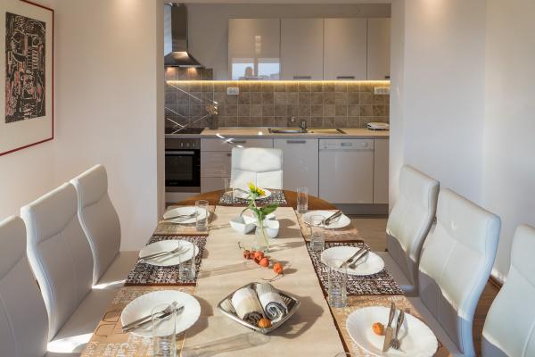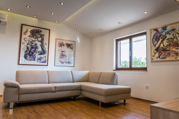 Popolnoma opremljen in sodoben apartma s pogledom na morje in bazen. 10 minut hoje do plaže. V mirni vasici, obdani z zelenjem, je idealen kraj za počitek in sprostitev. V bližini je marina, kjer lahko privežete svojo ladjo. Infinity rob bazen (8x4m) s ploščice za mozaike se gradi. Da bi se končala v maju. Čudovit razgled na morje. zelo tiho v noč. Obdan z restraurants, lokali, lepih plaž, reke, gore. Split center mesta 15 minut vožnje. Beach 10 minut hoje. brezplačno parkiranje Mirni resort. Vila se nahaja v mirni soseski, obkrožena z veliko borovcev. To je deset minut hoje od plaže, (odličen pogled na morje), in petnajst minut vožnje od središča Splita. Majhno pristanišče 10 min hoje