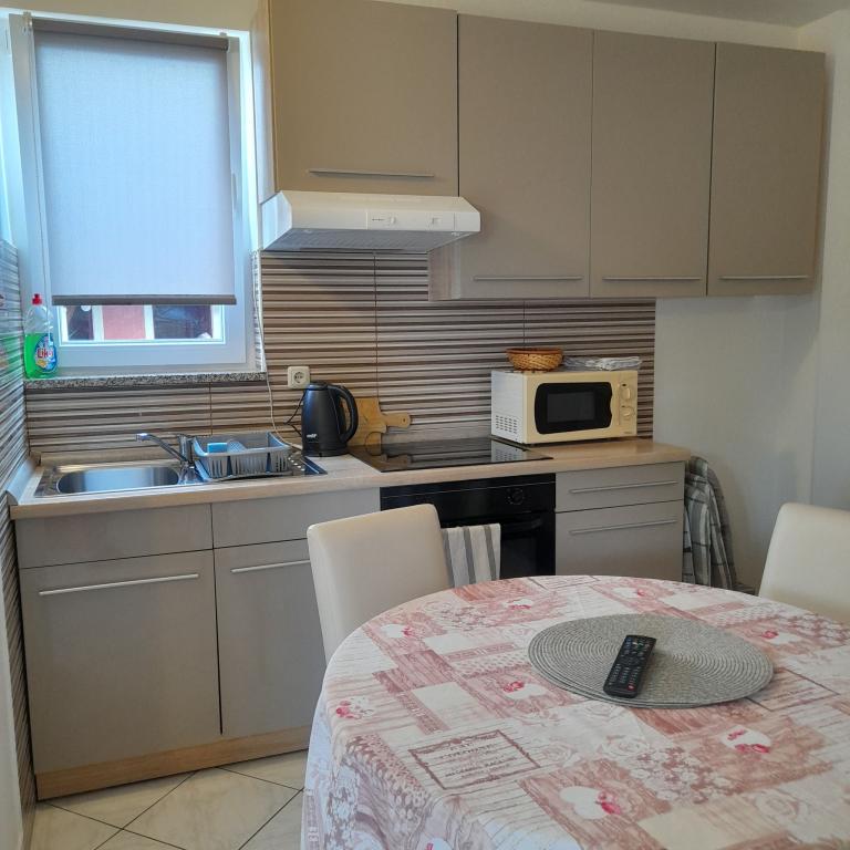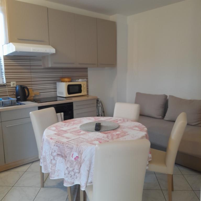 Letos smo bili pri gospe Dragici, izjemno prijazni in topli gospodinji, pa tudi pri njeni čudoviti gazdarični hčerki 10. Namestitev je izredno lepa, moderno zasnovana, postelje odlične, prostor čist in urejen, najljubše mi je bilo, da ima namestitev vse... Veliko brisač, pralni stroj, kar je bilo izjemno pomembno. Odlična klima, vse je bilo prijetno in zelo lepo.. Z veseljem se vrnemo ob prvi priložnosti Lokacija apartmaja je zelo mirna in prijetna Lastnica je super.