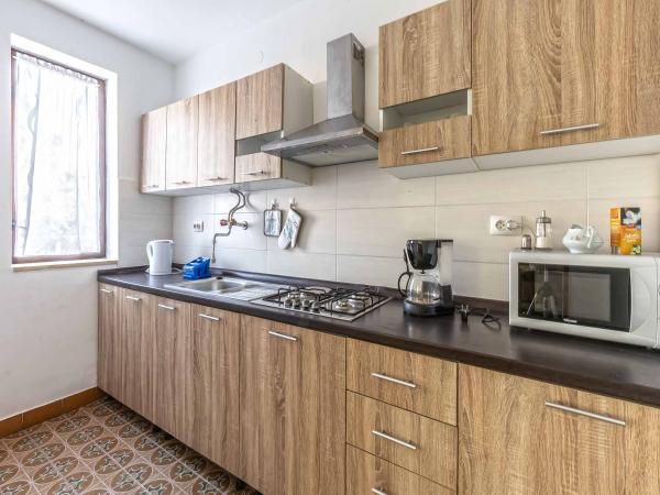 V prvem nadstropju je stanovanje zmogljivost za 8 oseb. Vsebuje štiri ločene spalnice z zakonsko posteljo. V dnevni sobi je tudi jedilna miza. Od izhoda jedilnico z majhno teraso z mizo in stoli. Kuhinja je opremljena z vsemi kuhinjskimi aparati in pripomočki.