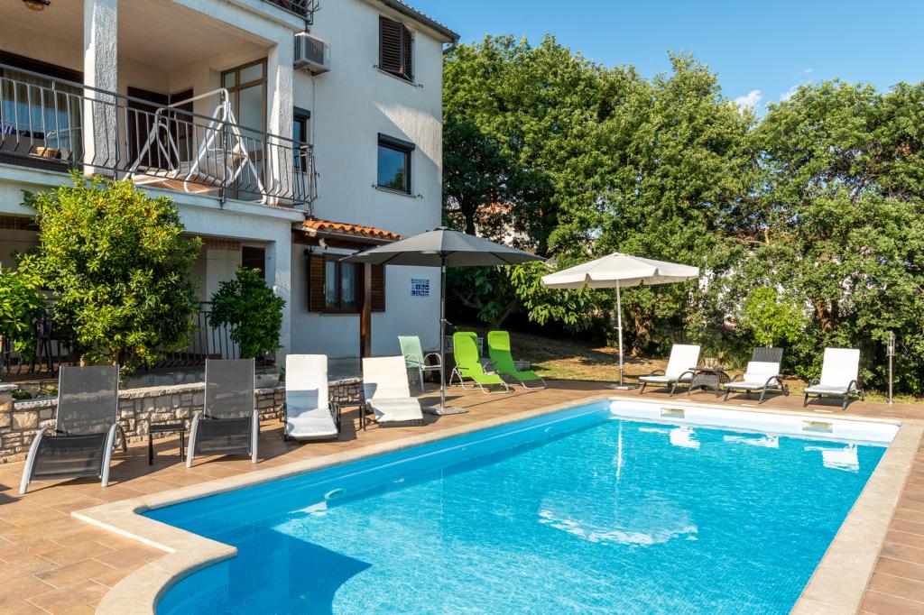 Dobrodošli v apartmajih Villa Verde. Nahajamo se v mirni vasici, 10 minut vožnje od centra Poreča. Uživajte v svežem zraku in žvrgolenju ptic, medtem ko se sprostite v 32 m² velikem bazenu, obkroženem s stoletnimi hrasti na osamljeni parceli s površino 3500 m2. Apartmaji so popolnoma opremljeni za sproščujoče bivanje v naravnem okolju, apartmaji Villa Verde pa so namenjeni samo odraslim. Ponujamo vam možnost uporabe žara z vso opremo (lahko vam pomagam z domačim lesom ter avtohtonim istrskim vinom in sladico.) Dragim gostom ponujamo domača jajca naših kokic, ki jih gostje z veseljem nahranijo jih nagradite z domačimi jajci. Upam, da ste se odločili, da boste ostali v naših apartmajih in uživali v sproščujočem vzdušju tipične istrske vasice.
