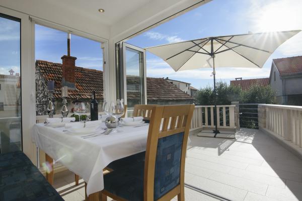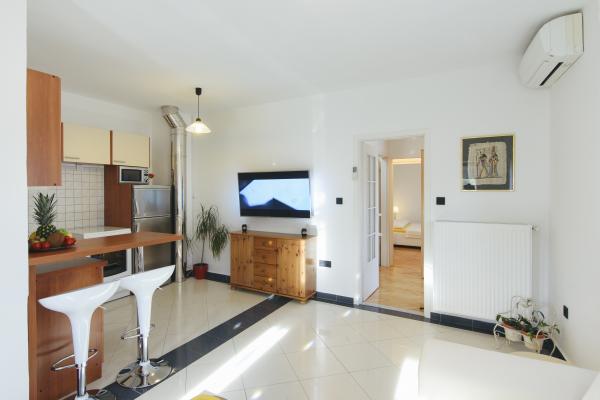 Center je tri sobno stanovanje 75m2, ki lahko sprejme do 7 oseb, ki se nahaja v centru Posedarje, Severna Dalmacija. Le 20 minut od vrveža čudovitem mestu Zadar, lokacija apartmaja je izhodiščna točka za sprehode in oglede, in naše prostorno teraso s pogledom na glavni trg je idealen za počitek in uživajte v sončnih dni in noči polne glasbe. Stanovanje se nahaja v prvem nadstropju pred kratkim obnovljeni tradicionalni dalmatinski hiši. Ima svoj vhod, Wi-Fi, klimatsko napravo in vse, kar potrebujete za vaš dopust.