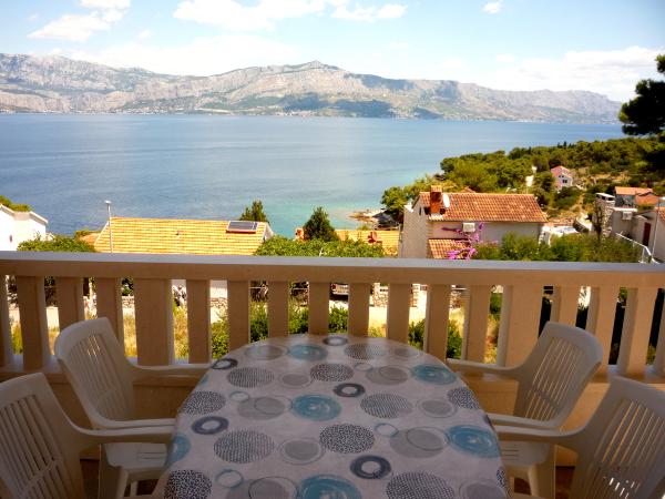 Nahaja se na super lokaciji nad priljubljene prodnate in skalnate plaže. Le 3 minute hoje do plaže, 10-15 minut hoje do centra, 150 m do najbližje trgovine. . Novo zgrajen, sodobno opremljen apartma s čudovitim pogledom na morje in panoramo. Nahaja se nad priljubljeno plažo na mirnem in mirnem turističnem mestu POSTIRA na otoku Braču. Povezan je z dnevnimi trajektnimi linijami z mestom Splita. 9 km (15 minut vožnje) od trajektnega pristanišča v Supetru na O Braču. Luksuzno je opremljena. Obstaja KLIMU, INTERNET, SAT TV, pomivalni stroj, pralni stroj, aparat za kavo. Obstaja možnost uporabe žara, parkirni prostor za gosta pa je na dvorišču hiše. Udoben apartma ponuja namestitev za 4 odrasle in 2 otroka. Obstajata dve dvoposteljni sobi, dodatna postelja je v dnevni sobi in je dodatno naplaćena. Hišni ljubljenčki niso dovoljeni.