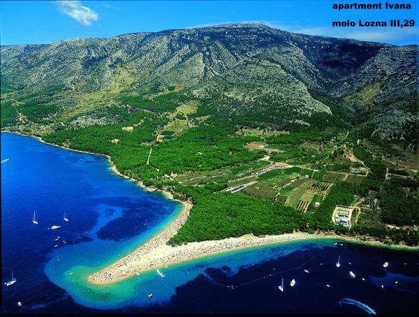 Turistična taksa nije vključena v ceno.Kristalno čisto morje je idealno za kopanje in potapljanje. V bližini apartmaja se nahaja plaža Molo Lozna, v kateri je majhno kavarno, lahko najamete za ležalnike. 3 km stran je peščena plaža LOVREČINA in privlačna plaža ZLATNI RAT v Bolu, ena izmed najlepših na Jadranu. V bližini apartmajev je več plaž obkroženih z borovim gozdom in oljkami. . Primerna je za pohodništvo, potapljanje in vzdušje je zelo prijazno. Lahko si izposodite čoln ali pojdite na izlet z organiziranim čolnom do sosednjega otoka Hvara, Omiša in Cetine za rafting, v Split, Trogir, Solin, Dubrovnik, Lovrečine, zanimive zgodovinske in kulturne vsebine. Idealno mesto za počitek in rekreacijo. DOBRODOŠLI!