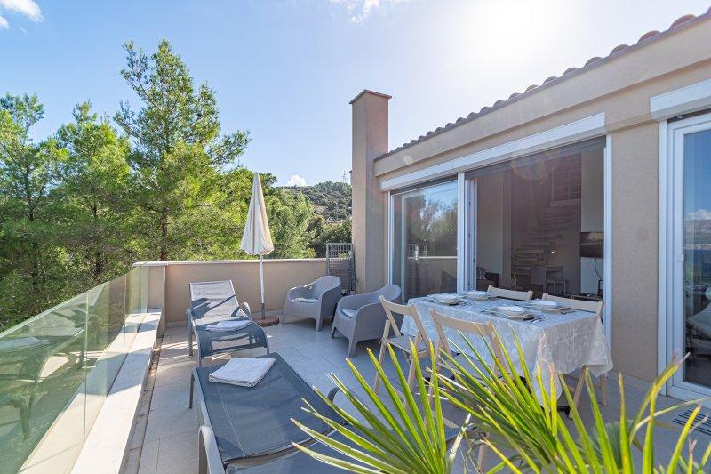 Turistična taksa je vključena v ceno.Vila Inga se nahaja v zalivu Mala Lozna. V neposredni bližini apartmaja se nahaja caffe bar, ki se nahaja na skali, ki se zelo lepo zliva z naravnim okoljem in katere terase se raztezajo vse do prodnate plaže, primerne za vso družino, kjer je možnost najema ležalnikov, senčnikov in tuša. Nekaj korakov stran se začne skalnata obala, ob kateri lahko uživate v morju in plavanju v veliko bolj intimnem okolju. Pred vilo je cesta skozi borov gozd in ob morju, ki vodi do zaliva Lovrečina - idealnega za kolesarjenje, sprehode, tek itd. 100 metrov stran je dobro založen supermarket z odlično ponudbo hrane, pijače in gospodinjskih izdelkov. Do središča Postire se lahko pripeljete v približno 20 minutah z lahkotnim sprehodom ob morski obali.