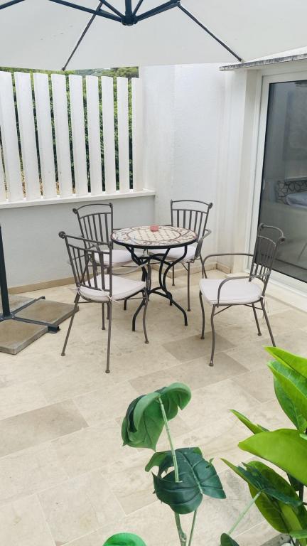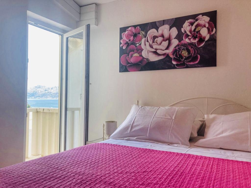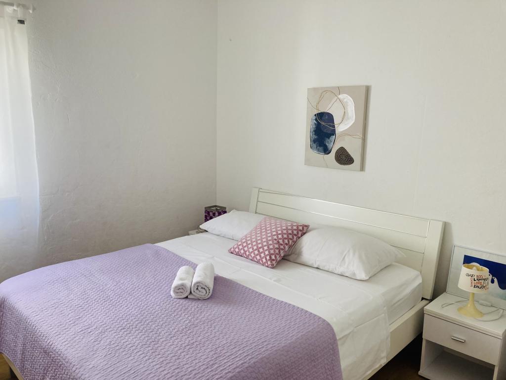 Apartma 6 za 2 osebi z lepim pogledom na morje, sončno in zelo prostoren tri spalnice z zakonsko posteljo, dnevna soba z zakonsko posteljo, dve kopalnici, masažno prho, dve klimatske naprave, indukcijski štedilnik, pomivalni stroj, pralni stroj , kavni avtomat, kuhalnik vode, mikrovalovna pečica in hladilnik. Terasa s kaminom, žar in teraso s pogledom na morje, ki imajo ločene mize in stoli. TV v dnevni sobi, in je na voljo brezžični dostop do interneta. To je opremljen s posodo za pripravo in serviranje hrane in pijače ter pribor v primernih količinah. To se nahaja v prvem nadstropju hiše v središču mesta. To se nahaja v bližini trgovine morja (40 m) (50 m), številne plaže, restavracije, bari in drugih gostinskih obratih. V ceno je vključeno parkirno mesto pred hišo, uporaba privez, posteljnino in brisače, čiščenje po odhodu in uporabo posteljo otroško če je to potrebno