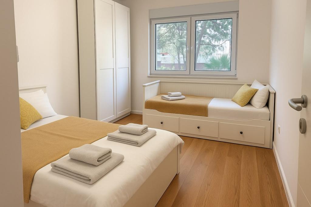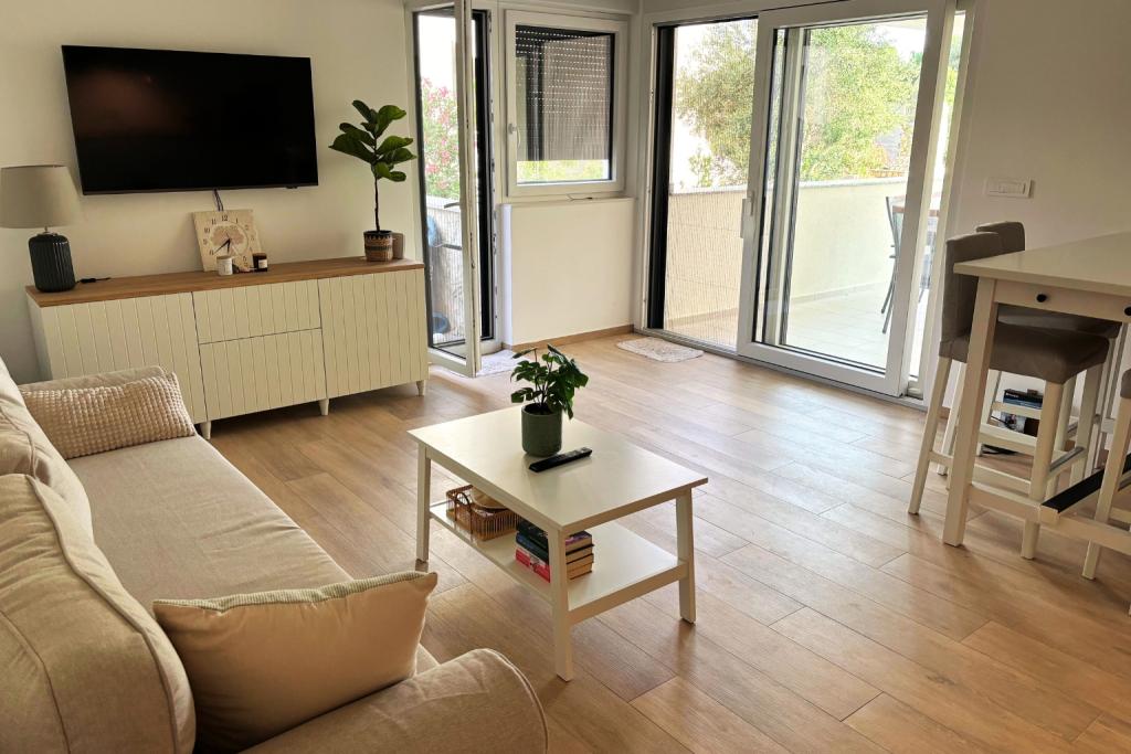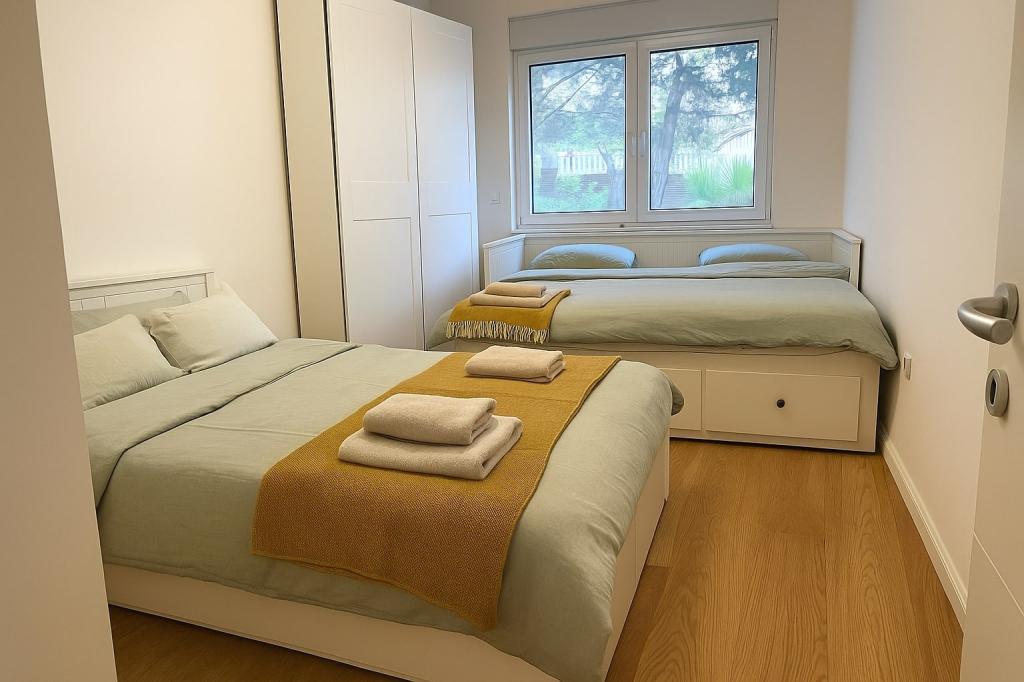 Dobrodošli v apartmaju Maris! Naše novo stanovanje s čudovitim pogledom na morje se nahaja le 70 metrov od čudovite dubrovniške plaže, obdane s palmami. V manj kot minuti hoje lahko uživate v kristalno čistem morju ali se sprostite v eni od bližnjih kavarn in restavracij. Apartma ima dve udobni spalnici, popolnoma opremljeno kuhinjo in prostorno dnevno sobo, okrašeno v svetlih, obalnih tonih z mediteranskimi detajli - idealen kraj za sproščujoče in prijetne počitnice. Vsaka soba ima svojo klimatsko napravo. Za vaše udobje je na voljo brezplačno parkirno mesto. Apartma se nahaja v mirnem okolju, idealnem za družinske počitnice. Trgovina je oddaljena le 5 minut hoje. V bližini, minuto hoje stran, je pekarna s svežim kruhom in stojnica z lokalnim sadjem in zelenjavo.