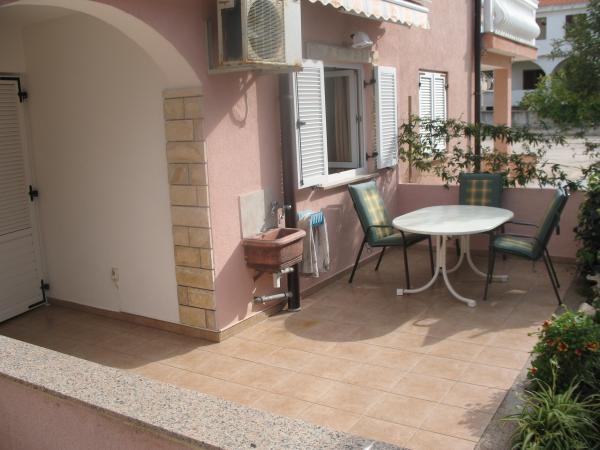 Apartma ima opremljeno kuhinjo z jedilnim kotom (kotna kavč postelja), kopalnico (tuš, umivalnik in WC), spalnico z zakonsko posteljo. Stanovanje ima (izvlečna tenda za pokrivanje) in veliko teraso. Parkirni prostor je zagotovljen. Hišni ljubljenčki niso dovoljeni. Število ležišč: 2 2 1 (otroška posteljica)