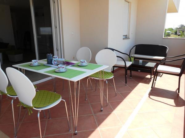Ostali smo skozi A2 + 2, zgoraj na levi (dvojno stanovanje je na desni), čisto, lepo, novo stavbo in novo notranjost, in - kar je najpomembneje - novo klimo, dobro umeščeno, je mogoče postaviti tako, da deluje celo noč in na pregibni postelji ni pihalo, v oknih so se valjale polne kovinske rolete, v nekaterih oknih mreže proti komarjem, velika terasa. Lastnik je zelo prijeten, dobro govori angleško. Jasne cene in jasno (cenik, razdeljen na letne čase, visi na vratih in se strinja s podatki iz mreže), ter davek, vključen v ceno (!!!), zato še cenejši za tako dobre pogoje. Za peto osebo smo imeli dodatno ležišče (velika zračna vzmetnica) - BREZ SPREMEMBE CENE (!!!). Tu je TV in WiFi, dobro opremljena kuhinja (bil je celo toaster), nova kopalnica, z veliko kabino, parkirišče, lahko si s psom (sosedje so imeli, lastnik ima tudi psa). Gremo naslednje leto! PRIPOROČAM !!!