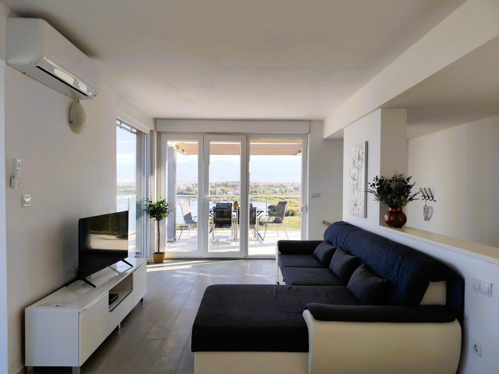 Sodobni dvosobni ali trisobni apartmaji v Povljani z razgledom na morje in skupnim bazenom so idealen kraj za družinske počitnice. Apartmaji imajo dve kopalnici, popolnoma opremljeno kuhinjo, prostorno dnevno sobo in velik balkon/teraso s čudovitim razgledom na morje in otoke. Apartmaji vključujejo brezplačen brezžični internet, klimatsko napravo v vsaki sobi in vse, kar potrebujete za udobno bivanje, kot doma. Apartmaji se nahajajo v bližini plaže (130 m), v kompleksu pa je bazen in prostor za sončenje. Vsi gostje imajo zasebno parkirišče pred apartmaji. Odlična lokacija in mirna osamljenost naredita to namestitev pravo izbiro za sprostitev in uživanje v dalmatinskem soncu.