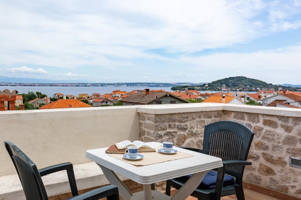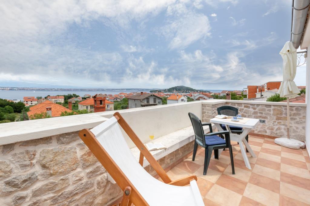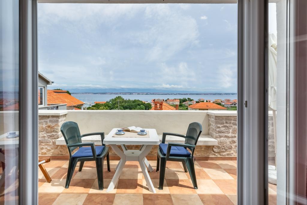 Udoben, prijeten apartma za 2 osebi v zelo mirnem predelu Preka, 3 minute hoje do plaže, centra in vseh dobrin. Apartma je sestavljen iz kuhinje, kopalnice, prostorne sobe z dnevno sobo in velike terase s pogledom na morje, Zadar in Zadarski kanal. Poseben vhod, zasebnost in mir. Klimatizirano, Wi-Fi