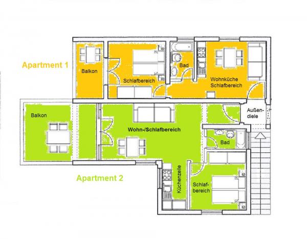 Apartma za dve osebi, možnost dveh dodatnih ležišč (41 m2)