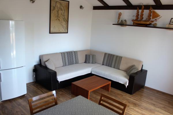 Apartmajska hiša se nahaja 150 m od glavnega pristanišča - pristanišča Krijal. Apartmaji merijo približno 40 kvadratnih metrov in so sestavljeni iz ene spalnice z zakonsko posteljo, kopalnice s tušem ter prostorne dnevne sobe in kuhinje. Udoben raztegljiv kavč lahko služi kot dodatno ležišče za dve osebi. Opremljeni so s satelitsko televizijo, wi-fi in klimatsko napravo. Izžarevajo rustikalen slog in so polni zanimivih in izvirnih detajlov, kar jim daje posebno toplino in čar. Zaradi različnih tonov dekoracije v apartmajih in lažje navigacije pri rezervaciji so apartmaji razdeljeni na rjavo - čokoladno in belo - vanilijevo. :-)