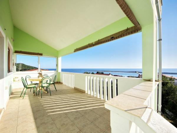 Družinska počitniška hiša se nahaja na mirni in povišani lokaciji na zahodni strani otoka. S prostorne terase lahko uživate v pogledu na odprto morje in bližnje otoke ter na edinstven sončni zahod. Trgovina, trajektno pristanišče, restavracija in plaža so le nekaj minut hoje od hiše, medtem ko je središče otoka na vrhu hriba in je 5-6 minut stran.