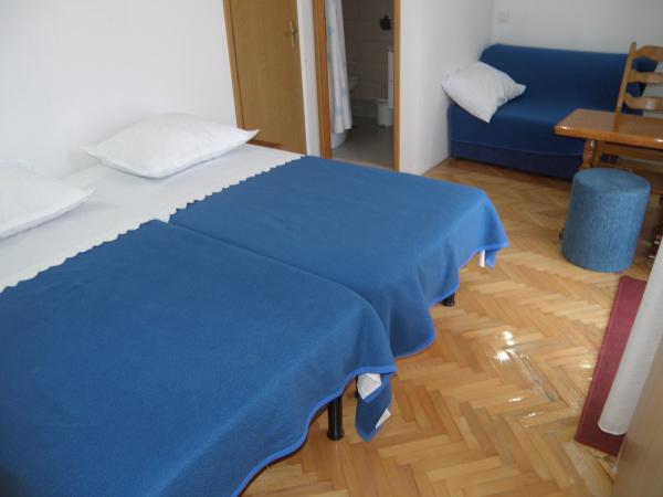 Lep in sodoben apartma za štiri ali pet v centru Primoštena z parkirišče za en avto, nekaj minut do plaže, le nekaj minut do glavnega trga, trge, trgovine. Udoben klimatiziran, lahko uporabite brezplačno wi-fi. Sestoji iz dveh etaž. Na vrhu sta dve spalnici in manjša kopalnica. V eni sobi je zakonska postelja in ena twin, obe spalnici vodi k manjšim balkonom. V spodnjem delu je kuhinja, jedilnica, kavč in verando. Nahaja se v mirnem delu mesta, in vse je na dosegu roke - kot nalašč za idealne počitnice. Studio Thomas na Put murve 19, v mirnem starem mestnem jedru. Dvoposteljna soba z dodatnim ležiščem je obogatena s kuhinjo in kopalnico. Opremljen je s televizijo in klimatsko napravo je v dvorani in njegova odlična izolacija hladi sobo v zelo kratkem času. Parkirišče je v zakotnih ulic Gregory Nin, v bližini parka.