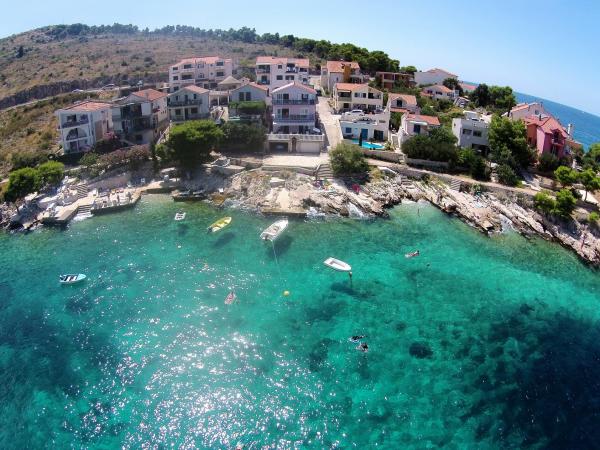 Atlas Apartmaji se nahajajo v zasebni hiši v bližini mirni vasici Primoštenu It. Apartmaji so tik ob morju. Apartmaji so na novo zgrajena 2014. Leto in nikoli najel. Obstajata dve sodobne in klimatizirane apartmaje. Apartmaji imajo: kuhinjo, dnevno sobo s kavčem, kopalnico, dve spalnici z šestimi ležišči. Vsak apartma ima parkirno mesto in teraso s čudovitim pogledom na morje.