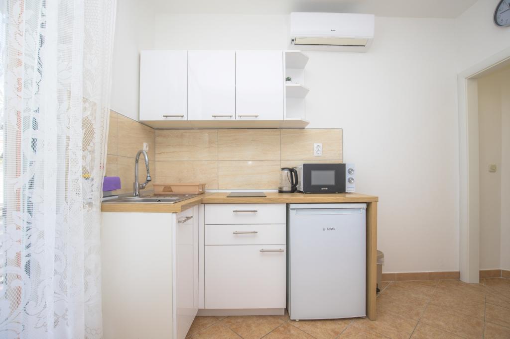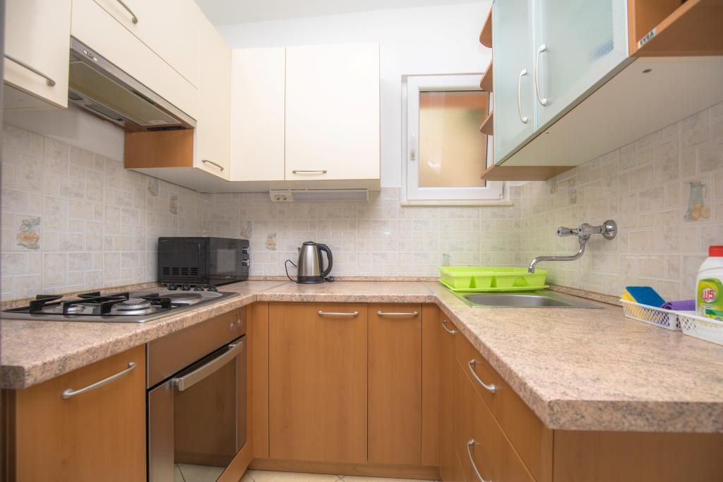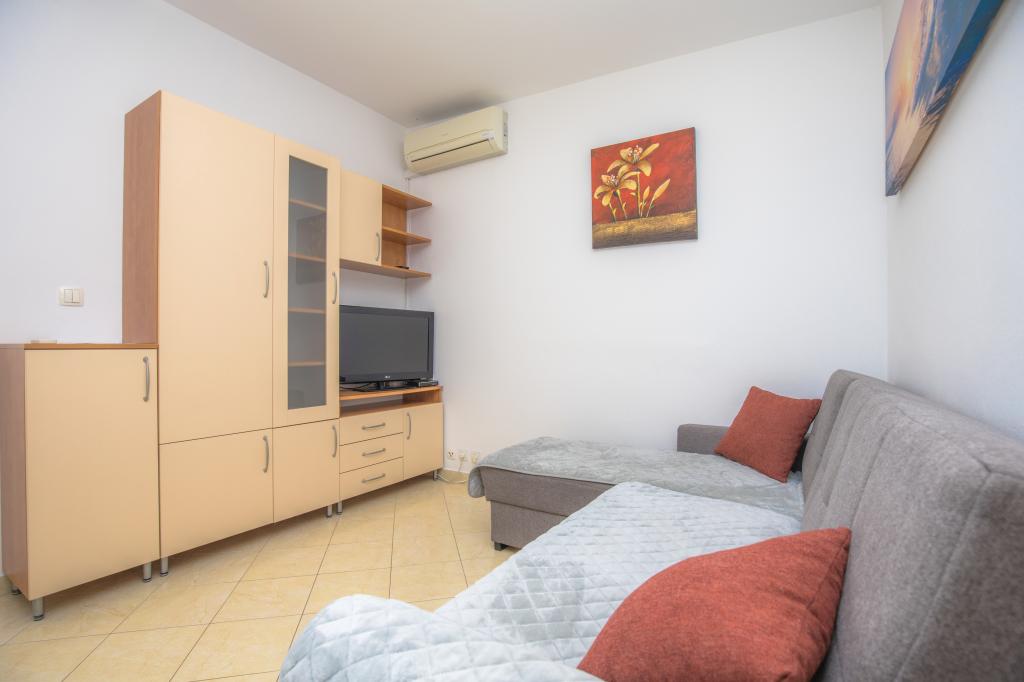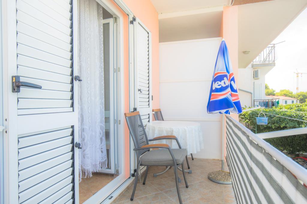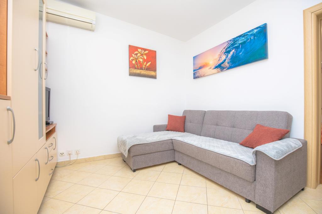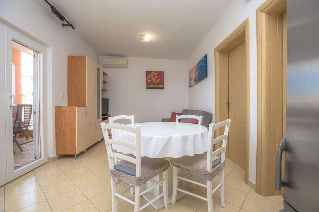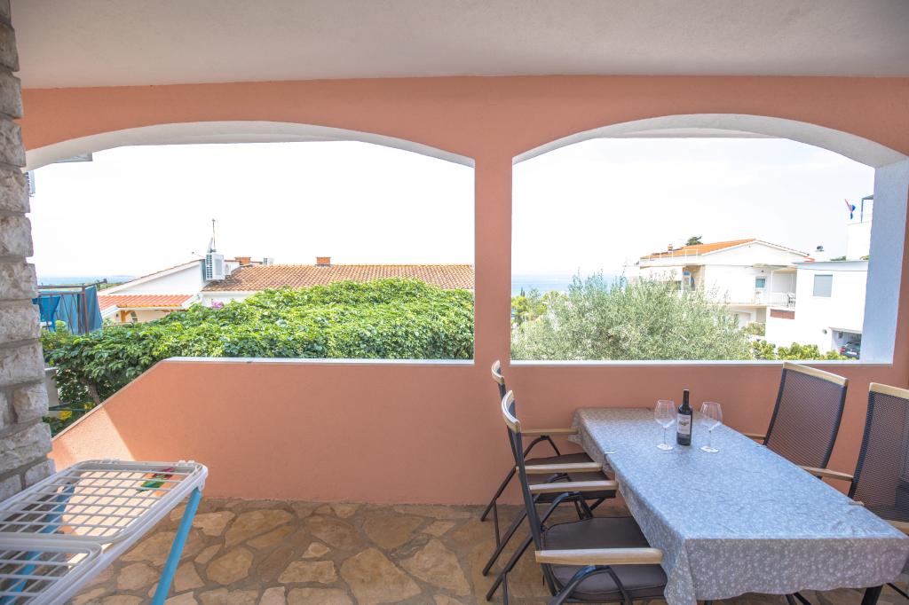Apartma se nahaja le 2 minuti od morja s prodnato plažo in kavarno, sprehajališče do centra ob morju. Nahajamo se v mirnem okolju. Hiša ima garažo in dvorišče s parkiriščem.