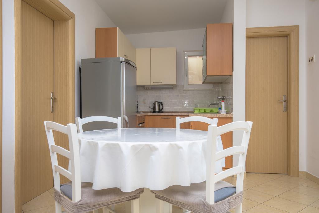 V apartmaju A4 smo bivali 2 tedna (2 odrasla + 3 otroci) in ga lahko samo priporočam. Je zelo čist, ima 2 udobni spalnici, popolnoma opremljeno kuhinjo, dnevno sobo s kavčem in TV ter balkon, kjer lahko uživate v kavi in pogledu na morje. Nahaja se v mirni soseski, plaža (z barom) je oddaljena 2 metra, številne druge plaže pa so v hoje oddaljene. V približno 5 minutah vožnje je nekaj tržnic. Gostitelji so zelo prijazni, vedno ustrežljivi in pridelujejo prvovrstno oljčno olje.