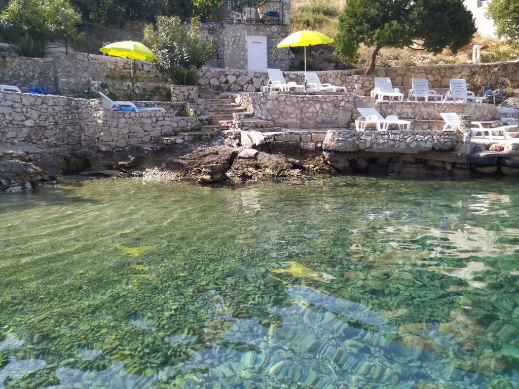 Apartmaji ob morju imajo res poseben čar. Dostop do plaže, (ki je v bistvu zasebna ) vsega nekaj metrov , tako da na njej ni nobene gneče.Tudi ležalniki te že čakajo, zaliv smaragdne barve in topla voda 26 stopinj.Okolje umetniško obdelano v kamnu, tudi plaža.Lastniki so prijetni , lepo smo bili sprejeti , počutje odlično in , skratka , bil je eden lepših dopustov. Hvala družini Bolanča.