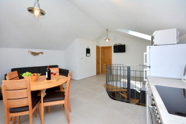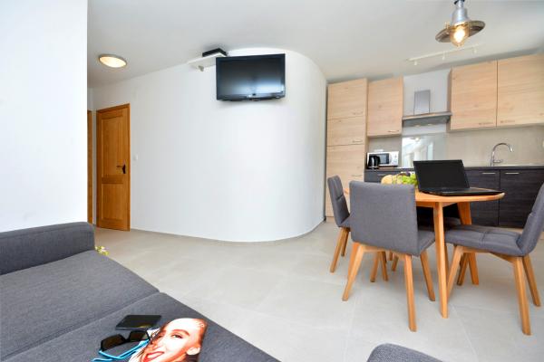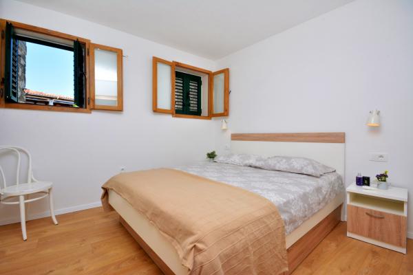 Moderno opremljen apartma v središču starega mestnega jedra Primoštena. Pozabite na vožnjo z avtomobilom, vse, kar potrebujete za prijeten oddih, je v 200 m oddaljenosti. Čudovite, kristalno čiste plaže so oddaljene 50 m od apartmaja, trgovine in številne restavracije, kavarne in druge ugodnosti pa so v neposredni bližini (10 m). Parkirno mesto je zagotovljeno in vključeno v ceno, prevoz do apartmaja v centru pa poteka z električnim papamobilom. Dva apartmaja se lahko združita v veliko, dvonadstropno stanovanje za udobno namestitev za max. 6 (šest) oseb.