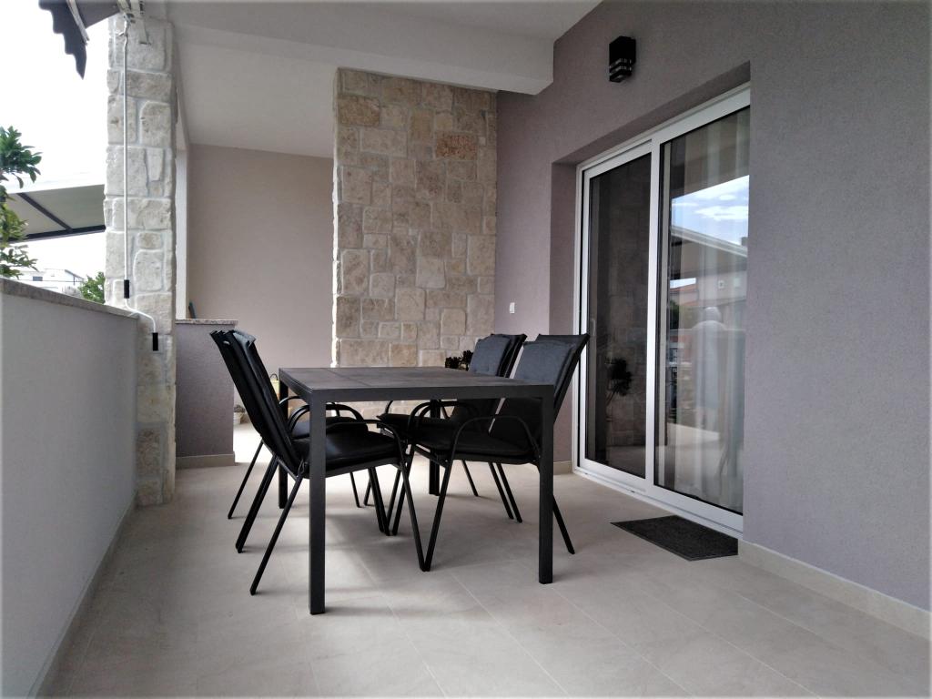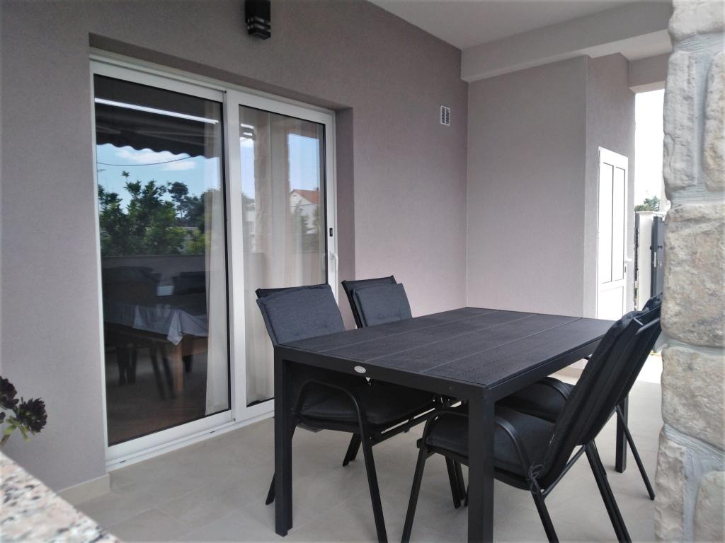 Apartma ALEN (40 m2) se nahaja v pritličju zasebne, samostojne hiše, obdane z vrtom. Sestavljen je iz 1 velike spalnice (20m2) z zakonsko posteljo, dodatnim ležiščem in otroško posteljico, kuhinje z dnevno sobo z raztegljivim kavčem 135 x 190 cm, kopalnice z WC-jem in čudovite pokrite terase 12 m2 pred apartmajem. Je popolnoma nov in opremljen z vsem, kar potrebujete za prijetne počitnice: klima, WI-FI internet, SAT-TV, mikrovalovna pečica, grelnik vode, opekač kruha, kavni avtomat, žar. Cena vključuje: posteljnino, brisače, kuhinjske krpe in brisače (menjava vsakih 7 dni), elektriko, vodo, WiFi internet in turistično takso. Apartma je 300 m od čudovite peščene plaže in 100 m od supermarketa.