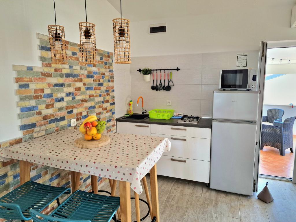 Stanovanje se nahaja na naslovu Bilotinjaka II, hišna številka 18, v Privlaki (Škrapavac). Nahaja se v bližini mesta Zadar, ki je oddaljeno 15 km, in turističnega naselja Zaton, ki je oddaljeno 1 km. Oddaljenost od plaže je približno 200 metrov, plaža pa je primerna za majhne otroke in neplavalce, ker je morje plitvo in peščeno. Nastanitvena kapaciteta je predvidena za 4 osebe, idealno za starše in dva otroka. Stanovanje se nahaja v družinski hiši v prvem nadstropju. Površina apartmaja je 36 m2 + 15 m2 pokrite terase in obsega: - spalnico - dnevno sobo - z zakonsko posteljo - kuhinjo - kopalnico - klimatsko napravo - žar (na dvorišču) - solarno prho (na dvorišču) - parkirno mesto