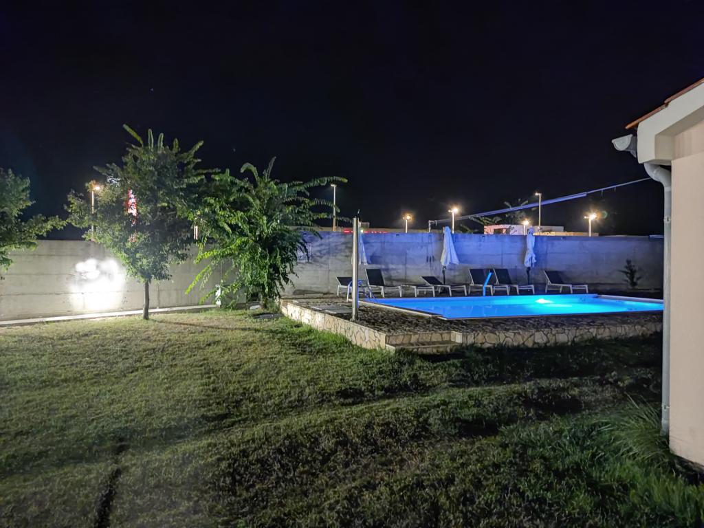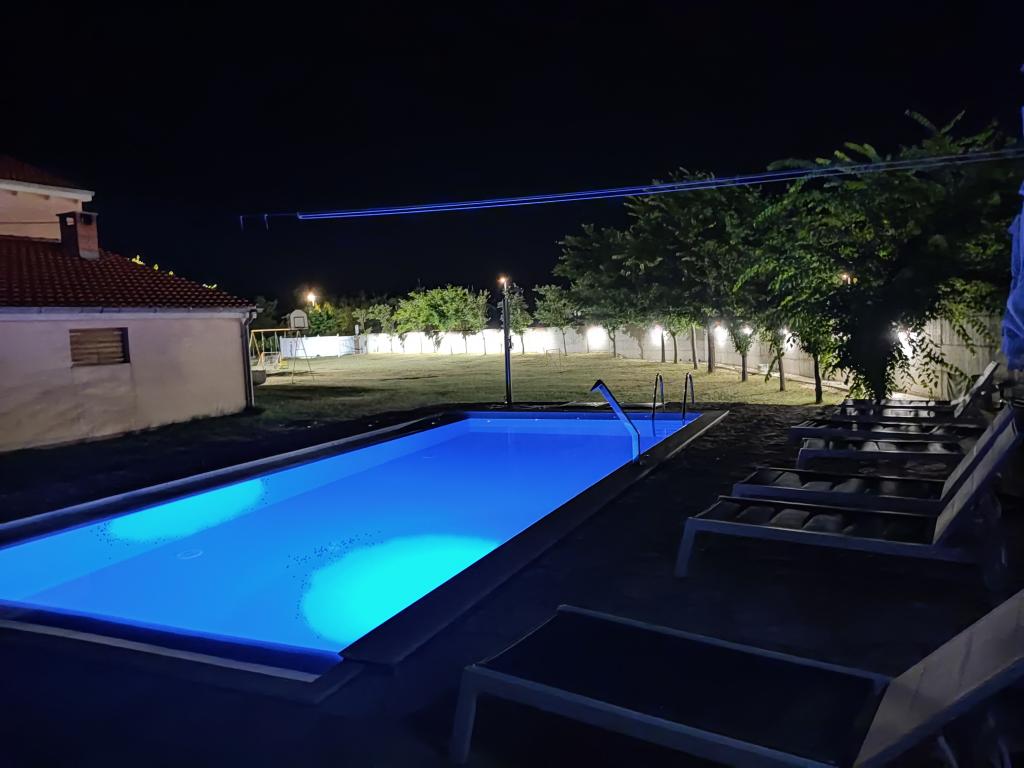 Objekt se nahaja na peščenem polotoku s peščenimi plažami in plitvim morjem, kar pomeni toplejše morje za kopanje. Prvi dve peščeni plaži sta oddaljeni 300 m, zato ni potrebe po uporabi avtomobila. V radiju 4 kilometrov na vseh treh straneh polotoka Privlaka, v različnih smereh vetra, je mogoče najti miren kotiček za kopanje. Veliko in prostorno travnato dvorišče je predvsem igrišče za otroke in odrasle. Neskončni bazen. Varno parkirišče, trda streha.
